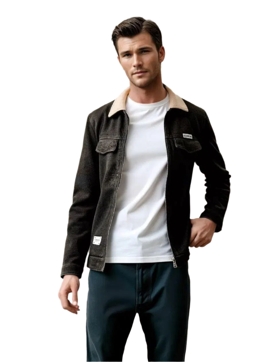This men's jacket combines warmth and style with its fluffy material. Stay cozy and fashionable...