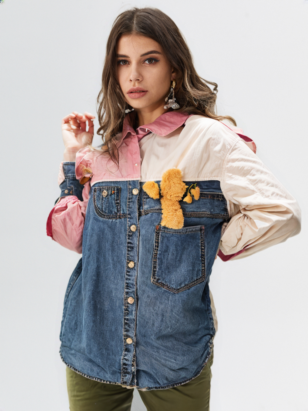 Stay stylish and cozy with our Women's Denim Shirt, featuring a cute teddy pocket and...