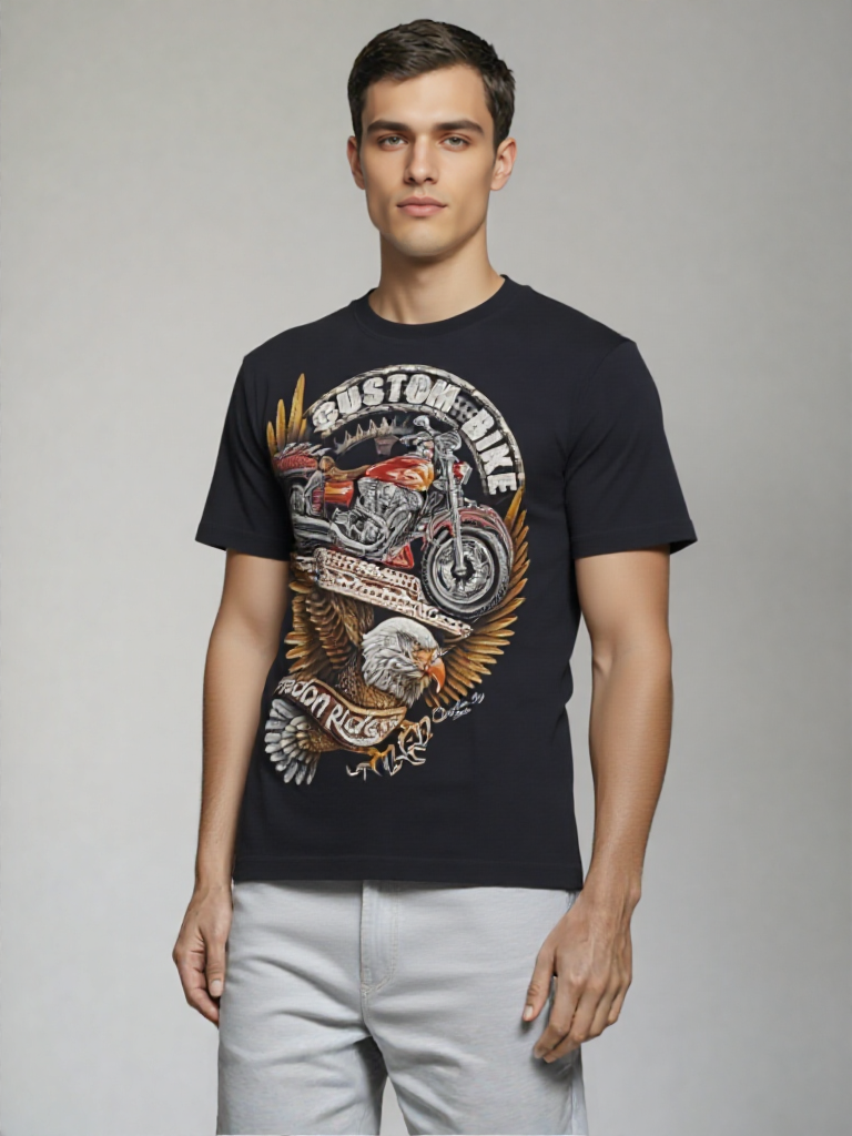 Men Born to Ride – Eagle & Custom Chopper Graphic T-Shirt