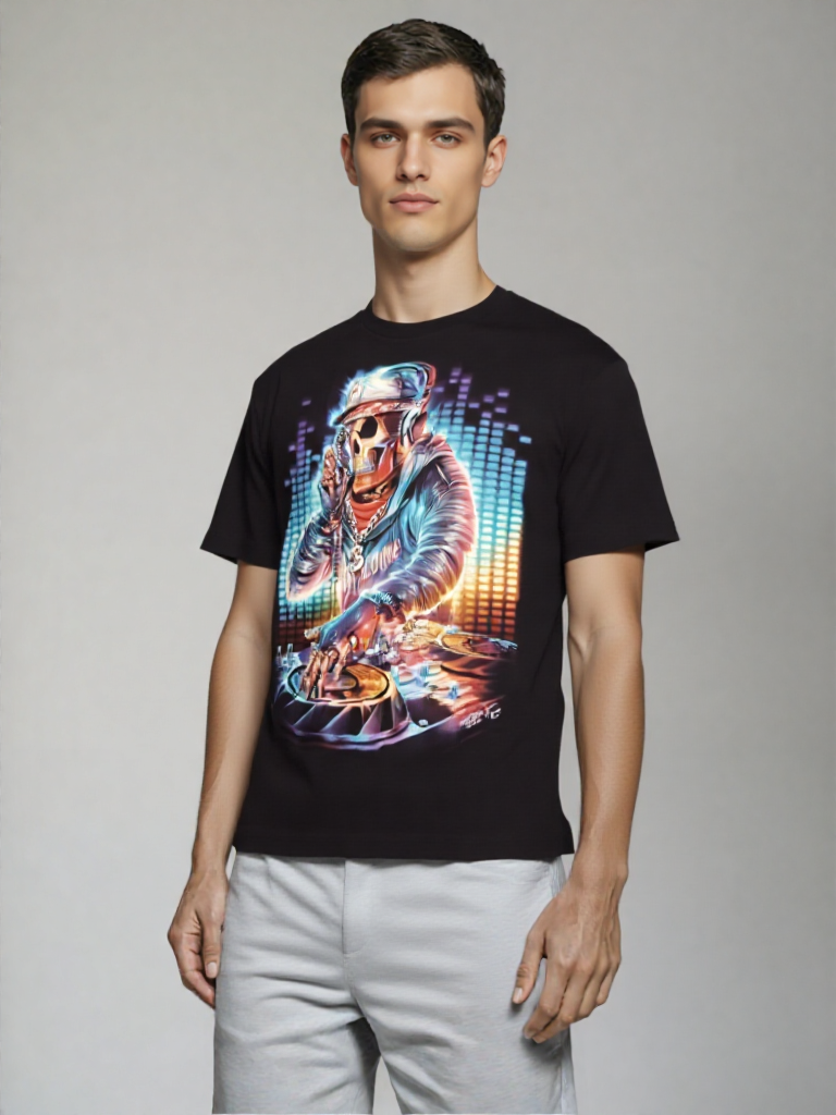 Men DJ From the Grave – Neon Skull Party T-Shirt