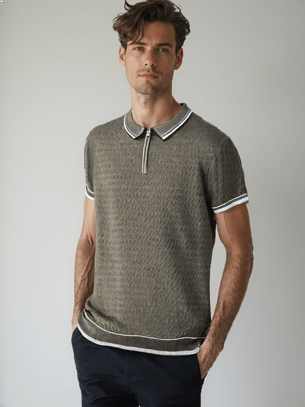 Made with a knitted half sleeve design, this men's t-shirt provides comfort and style. Crafted...