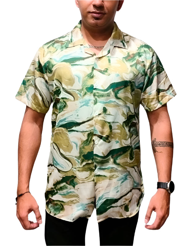 This men's shirt combines fashion and comfort with its eye-catching print and half sleeve design....