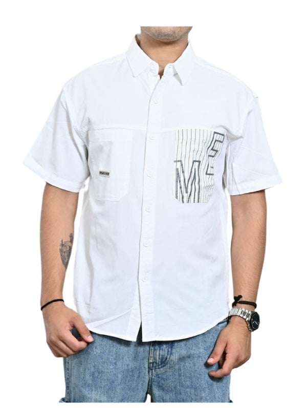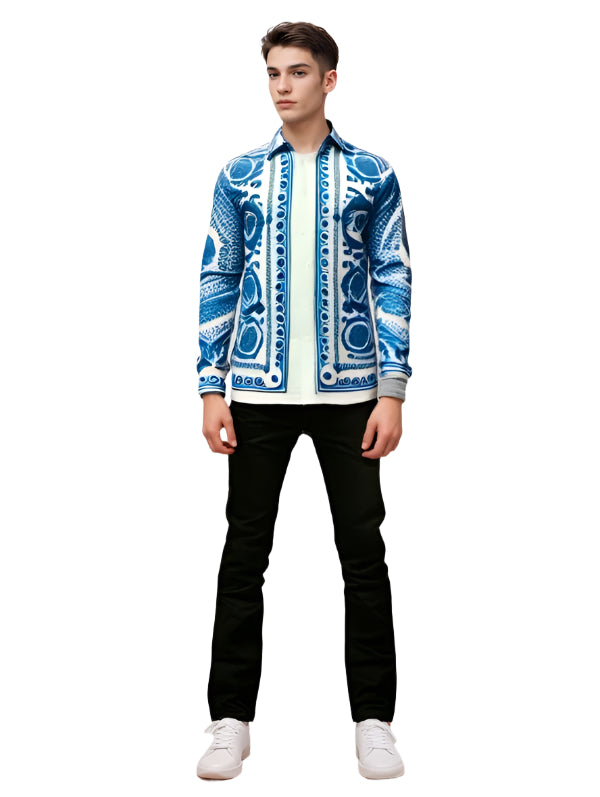 Expertly crafted with a crisp white print, this men's shirt offers a touch of sophistication...