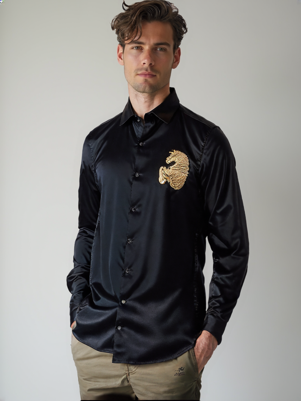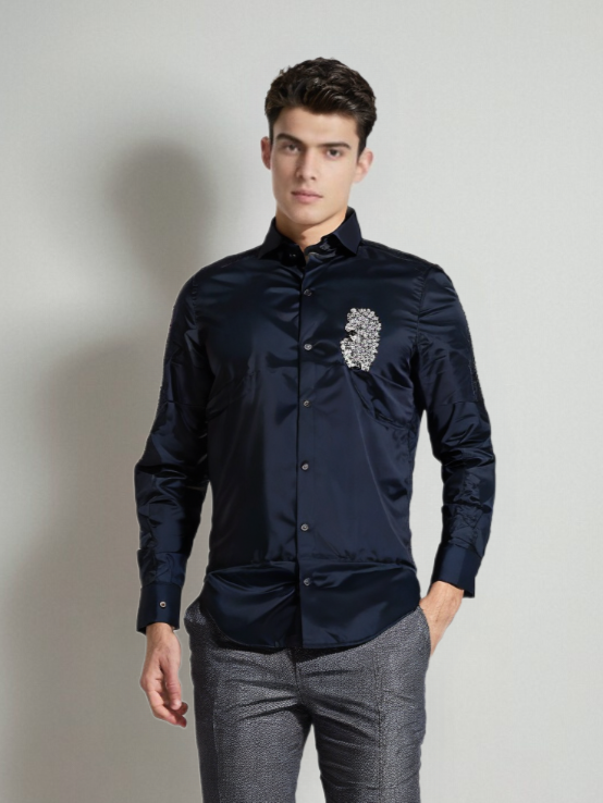 This men's formal shirt features a stylish sequined design, adding a touch of sophistication to...