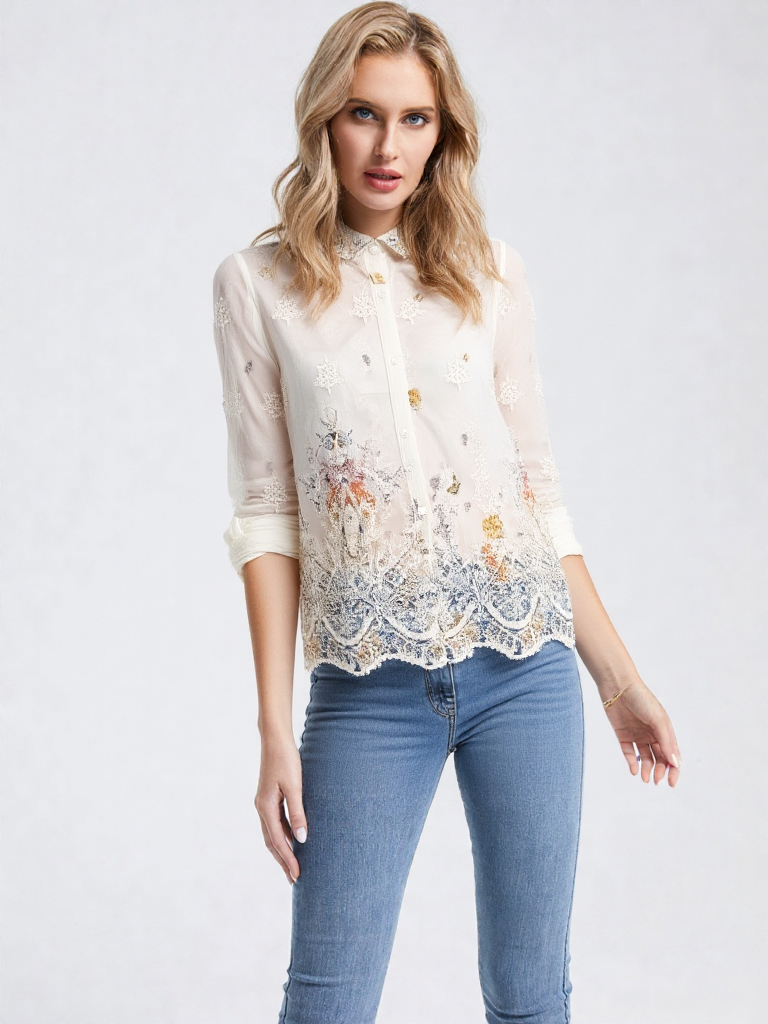 This women's shirt features beautiful embroidery design and is made from comfortable cotton fabric. Stay...