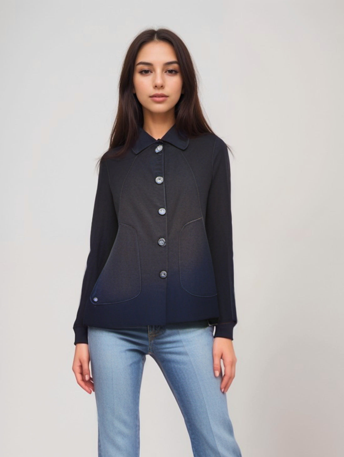 This collared shaket is made from a cotton blend fabric, perfect for cooler weather. With...