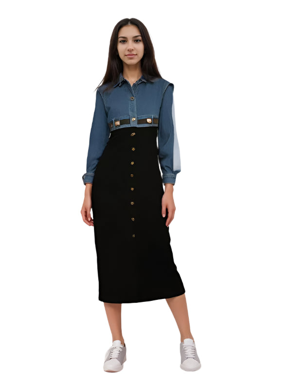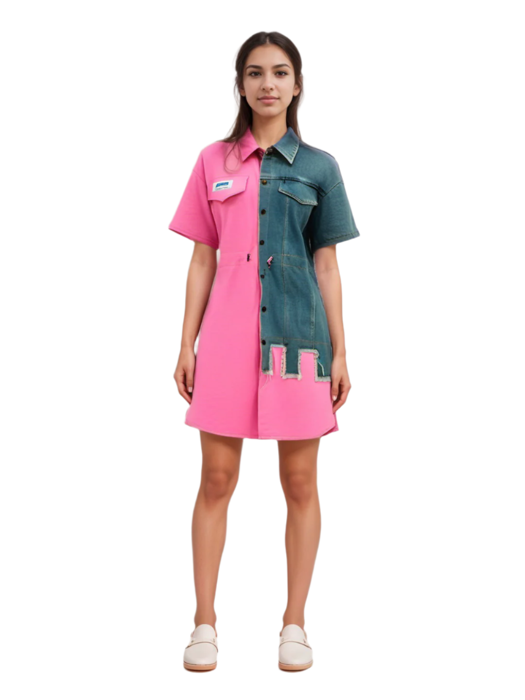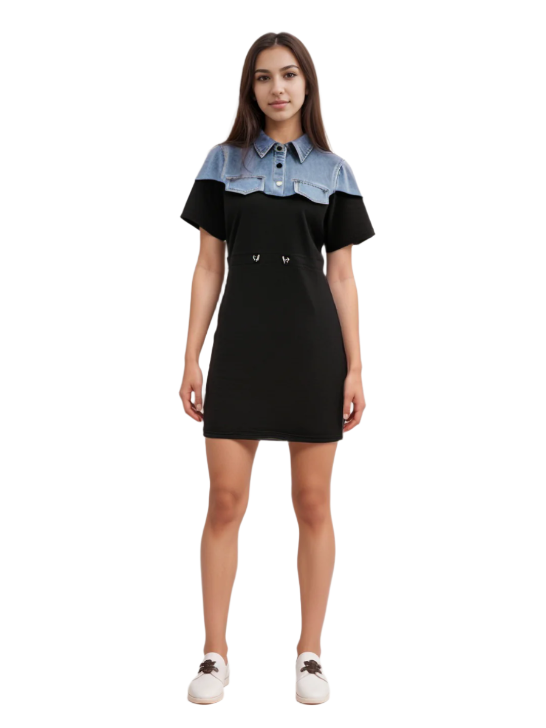 Fabric : Duel Fabric Cotton and Denim Dress For Women Color : Multi Dress For...