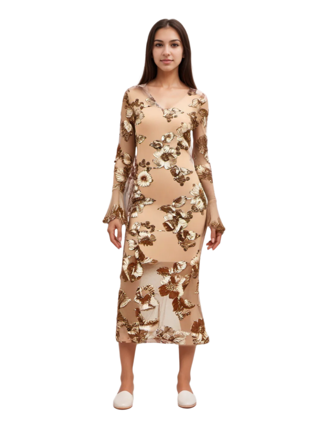 Sleeve Length : Half Sleeves Length : Midi; Neck : V-Neck Print or Pattern Type...