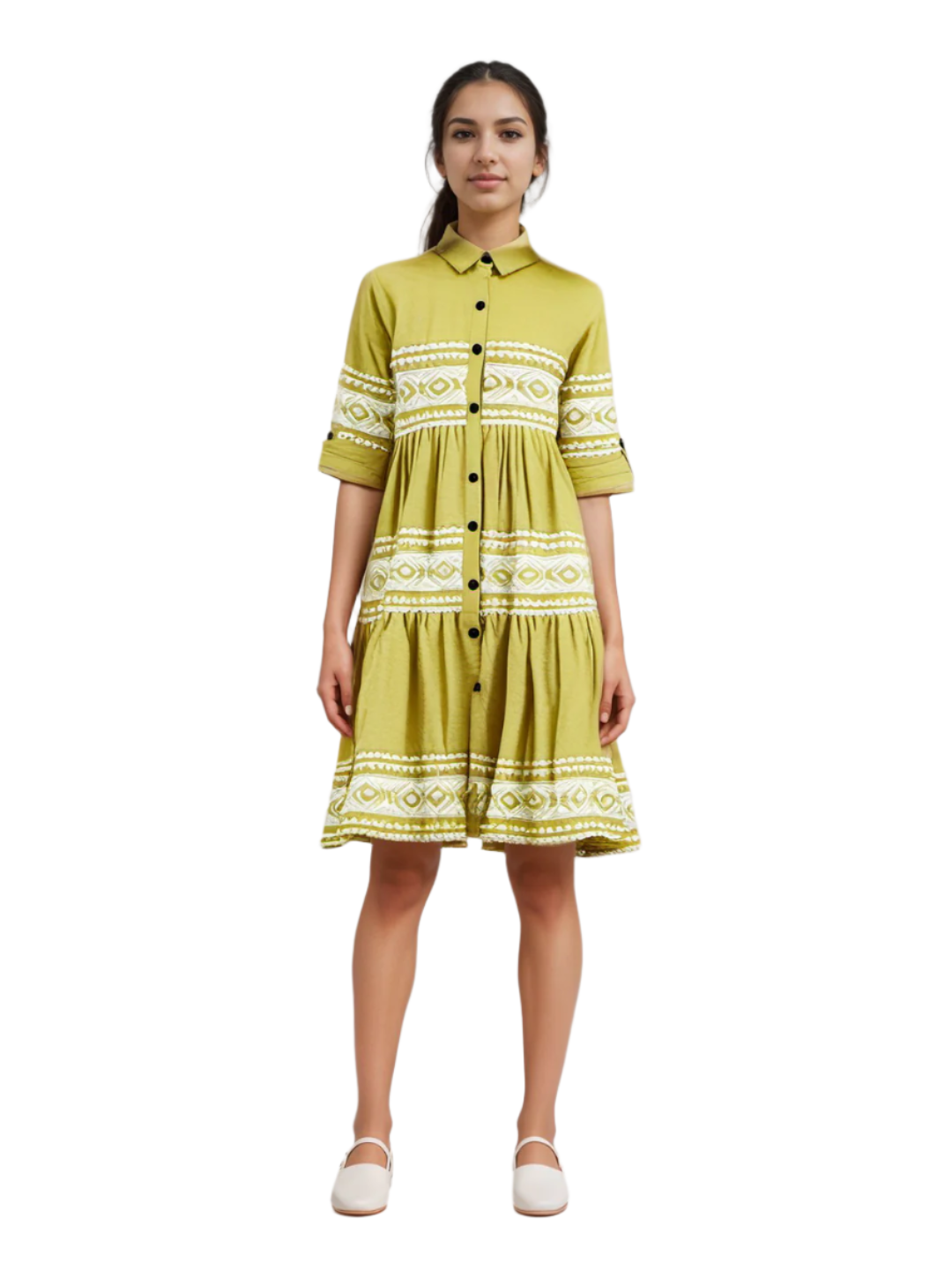 Introducing our chic Dangri Style Mini Dress, a fusion of playful charm and contemporary flair....