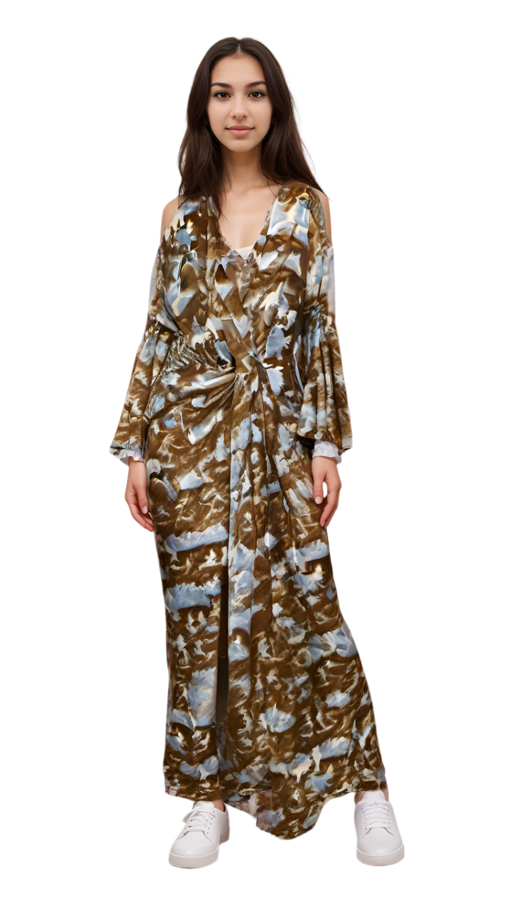This women's long dress is made from a unique cotton fabric that is both soft...