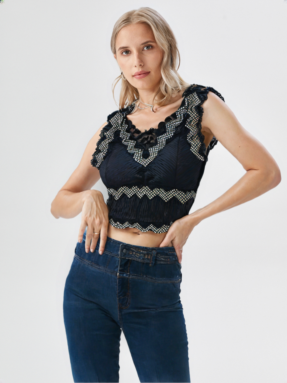 This women's bustier top is designed with precision to provide a structured and flattering fit...