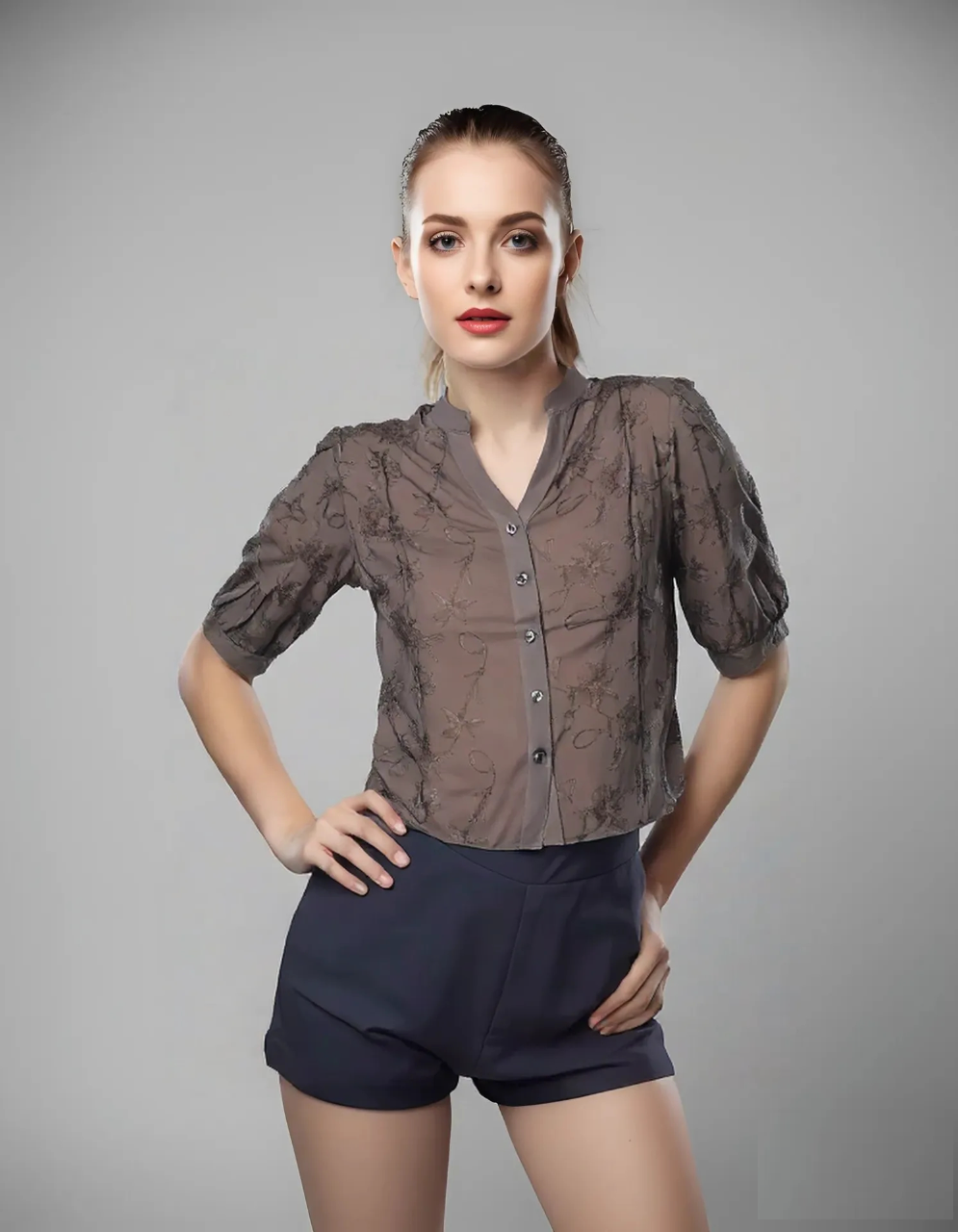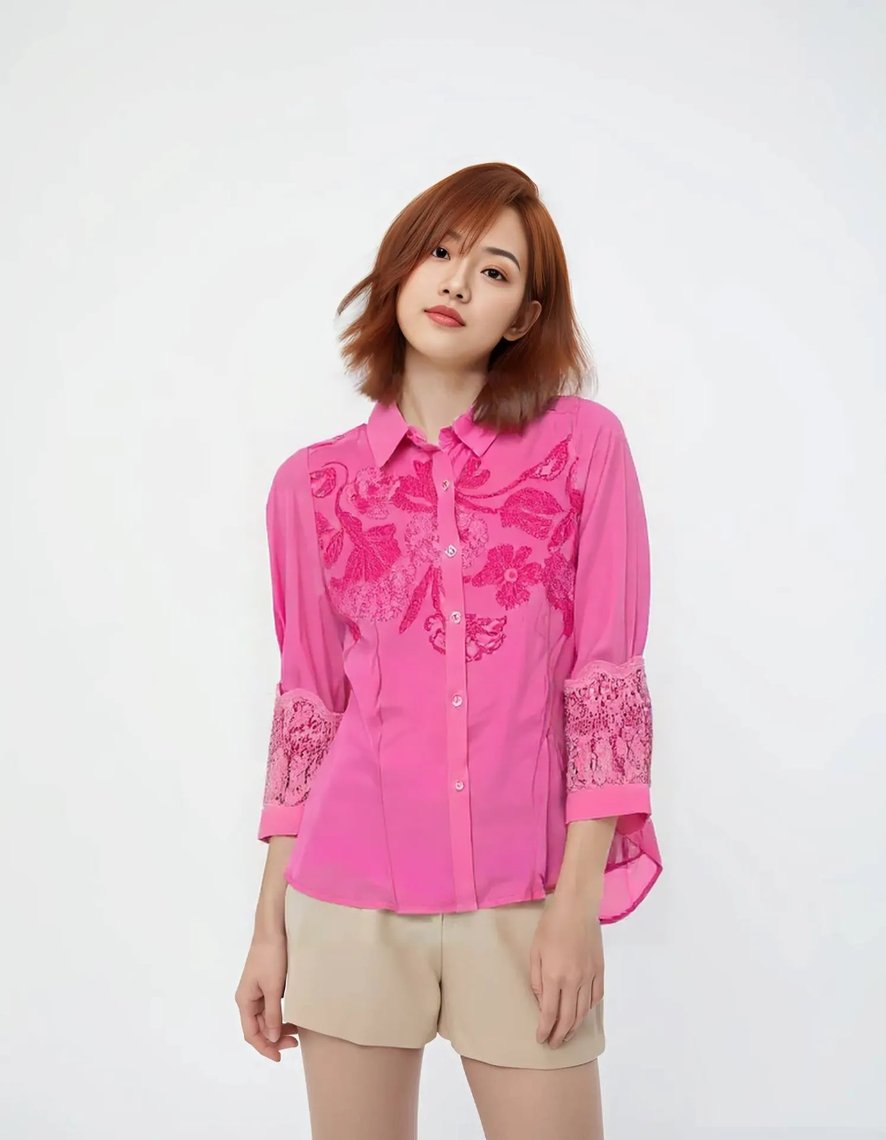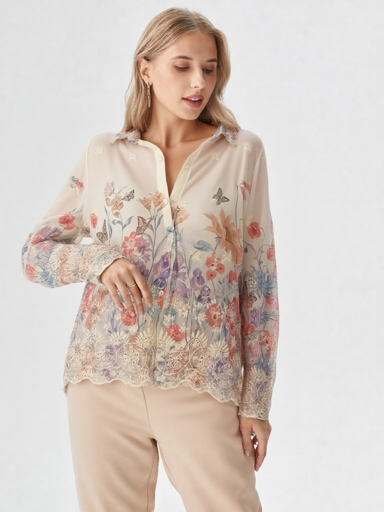 This meticulously designed women's shirt exemplifies superior craftsmanship with attention to structural details. Constructed from...