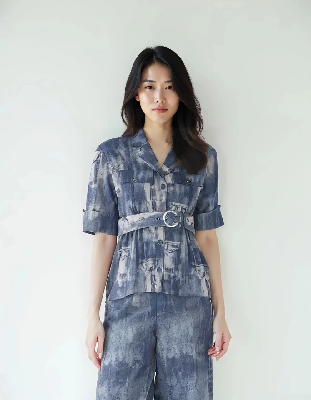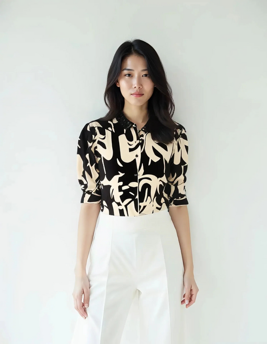 This Women's Shirt exemplifies precision tailoring through its meticulously calculated proportions and technical construction elements....