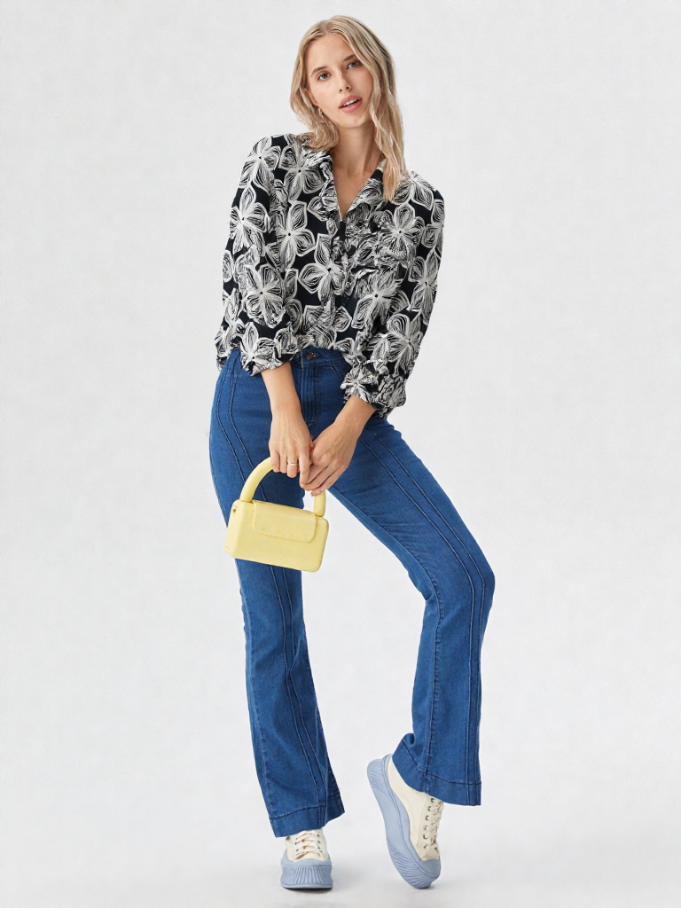 This women's floral printed shirt combines fashion and comfort with its delicate floral pattern and...