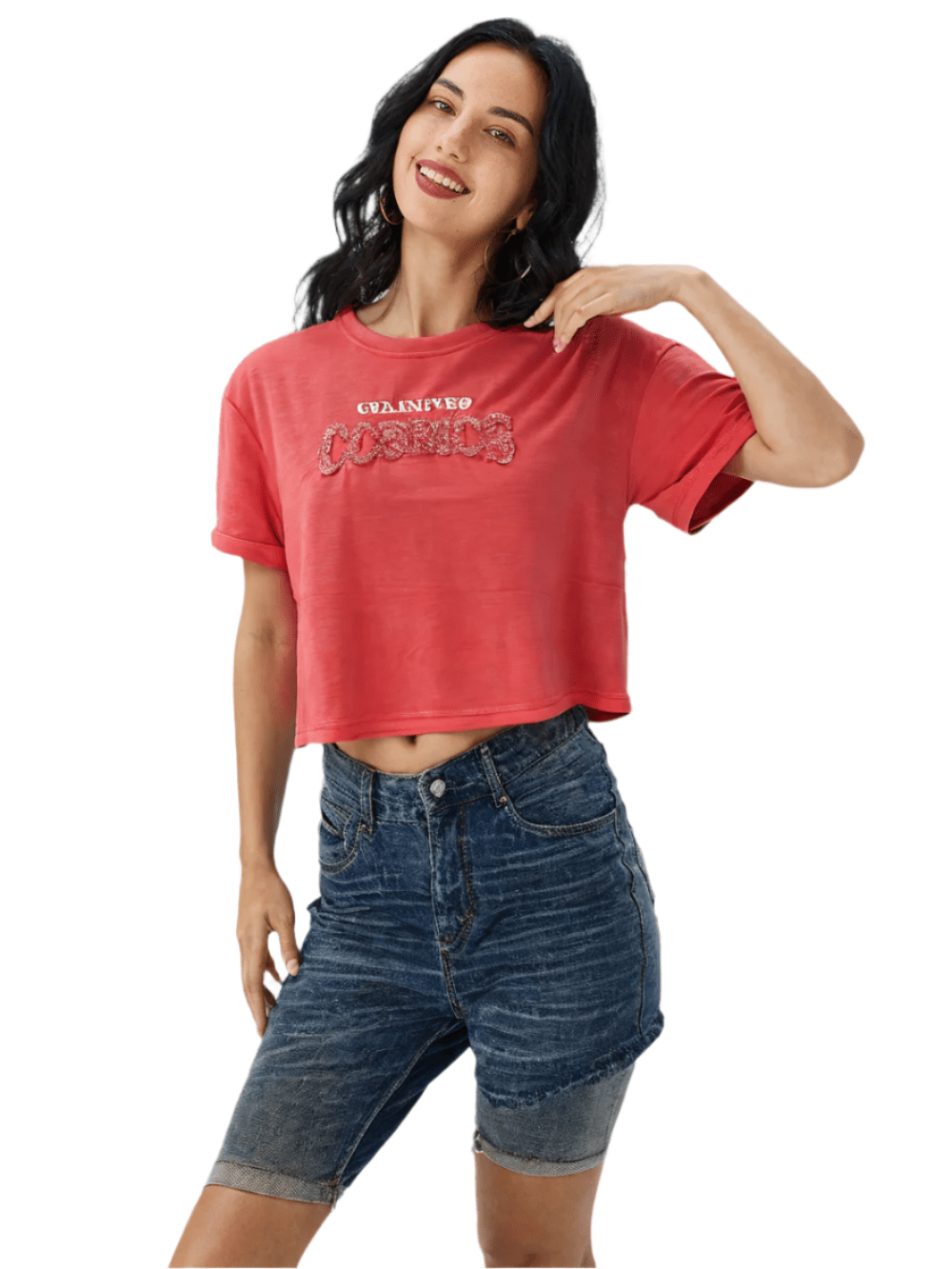 This printed crop t-shirt for women is a stylish addition to any wardrobe. Made from...