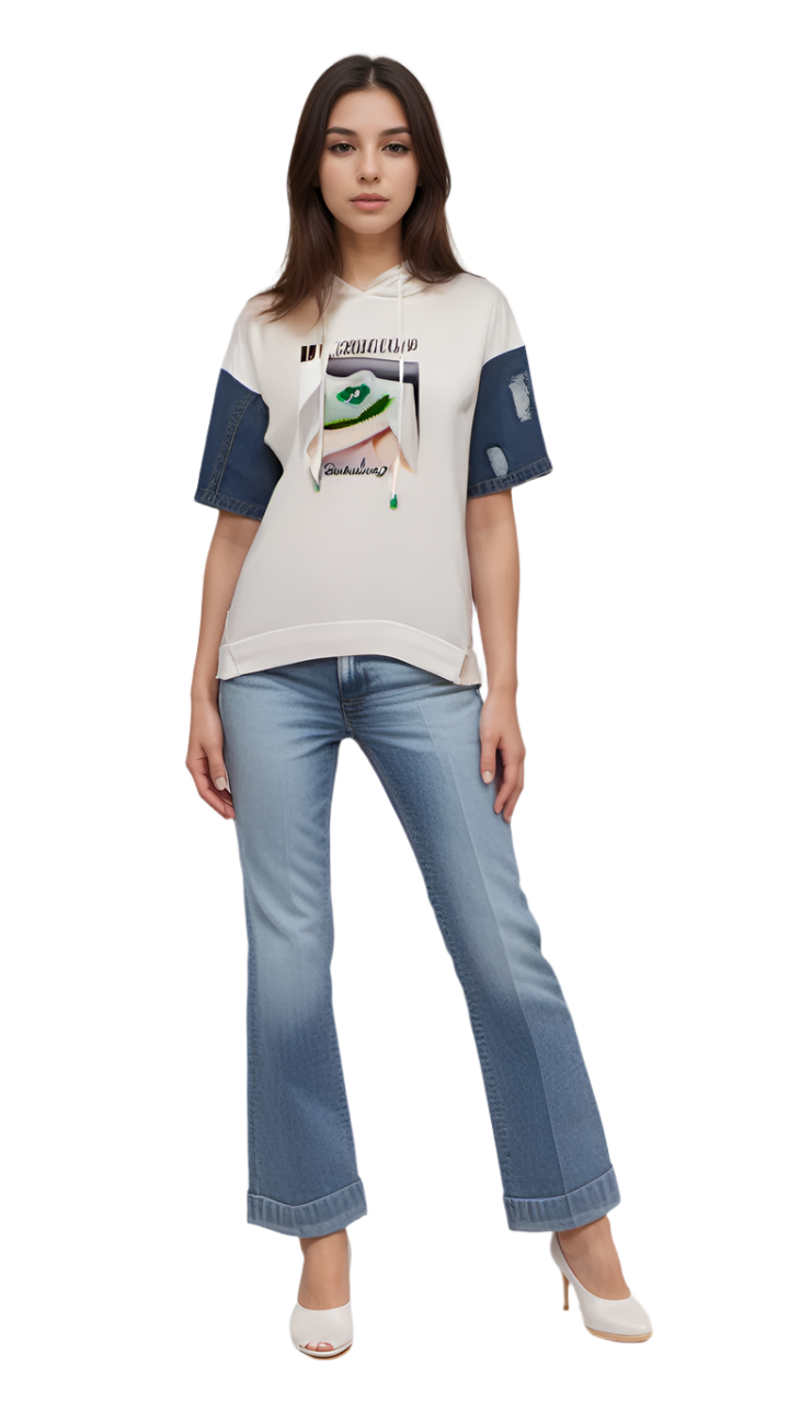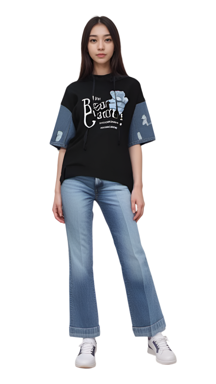 This comfortable t-shirt is designed with half sleeves and an oversized fit. The added hoody...
