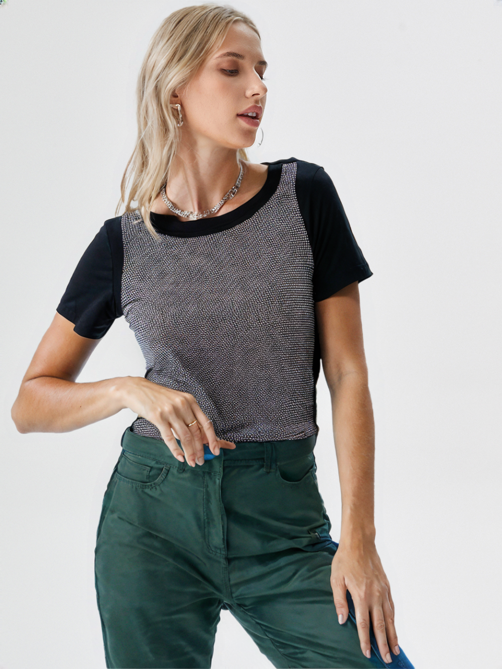 Mask Sequaned crop t-shirtNet Quantity : 1Occasion : Party, CasualProduct : T-shirtType : T-shirtDesign :...
