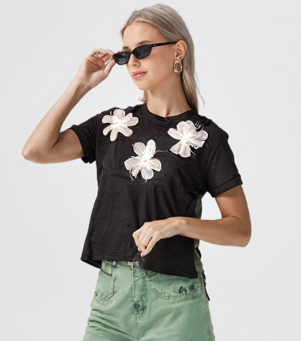 Women's Embroidered Flower Puff Sleeve Blouse – Summer Vibe Tee