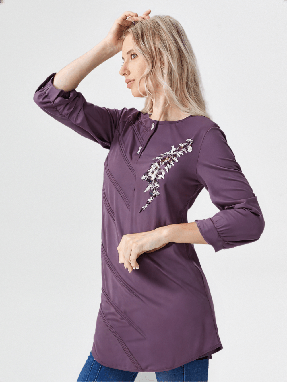 This women's shirt features beautiful embroidery design and is made from comfortable cotton fabric. Stay...