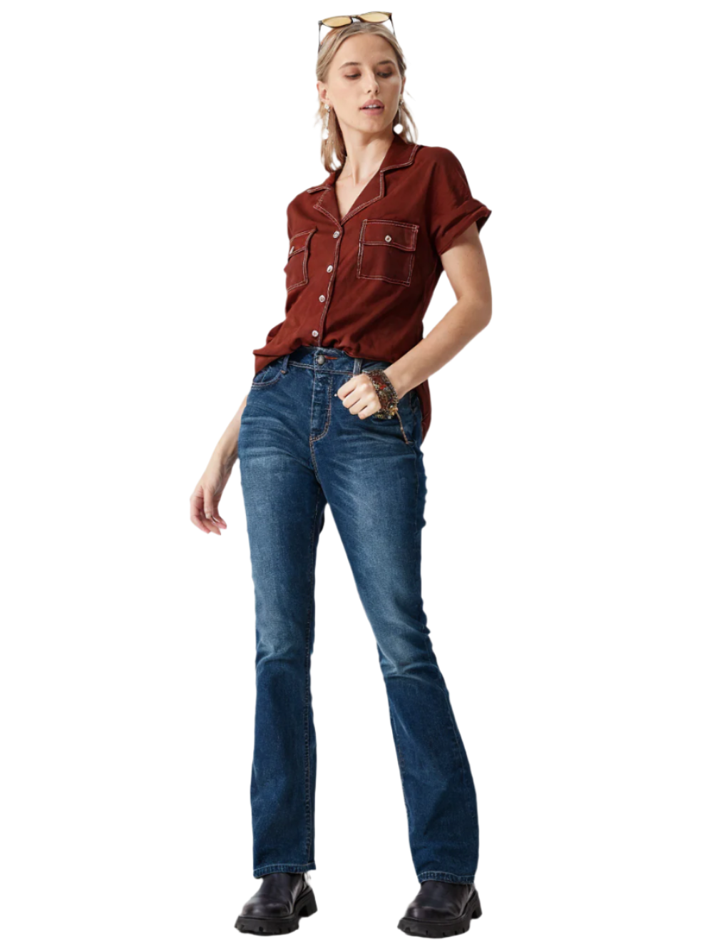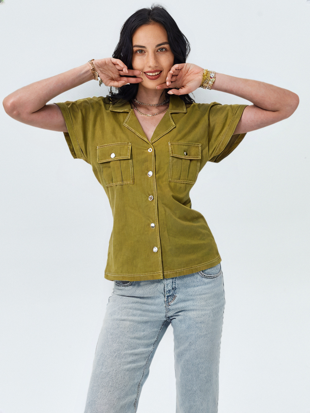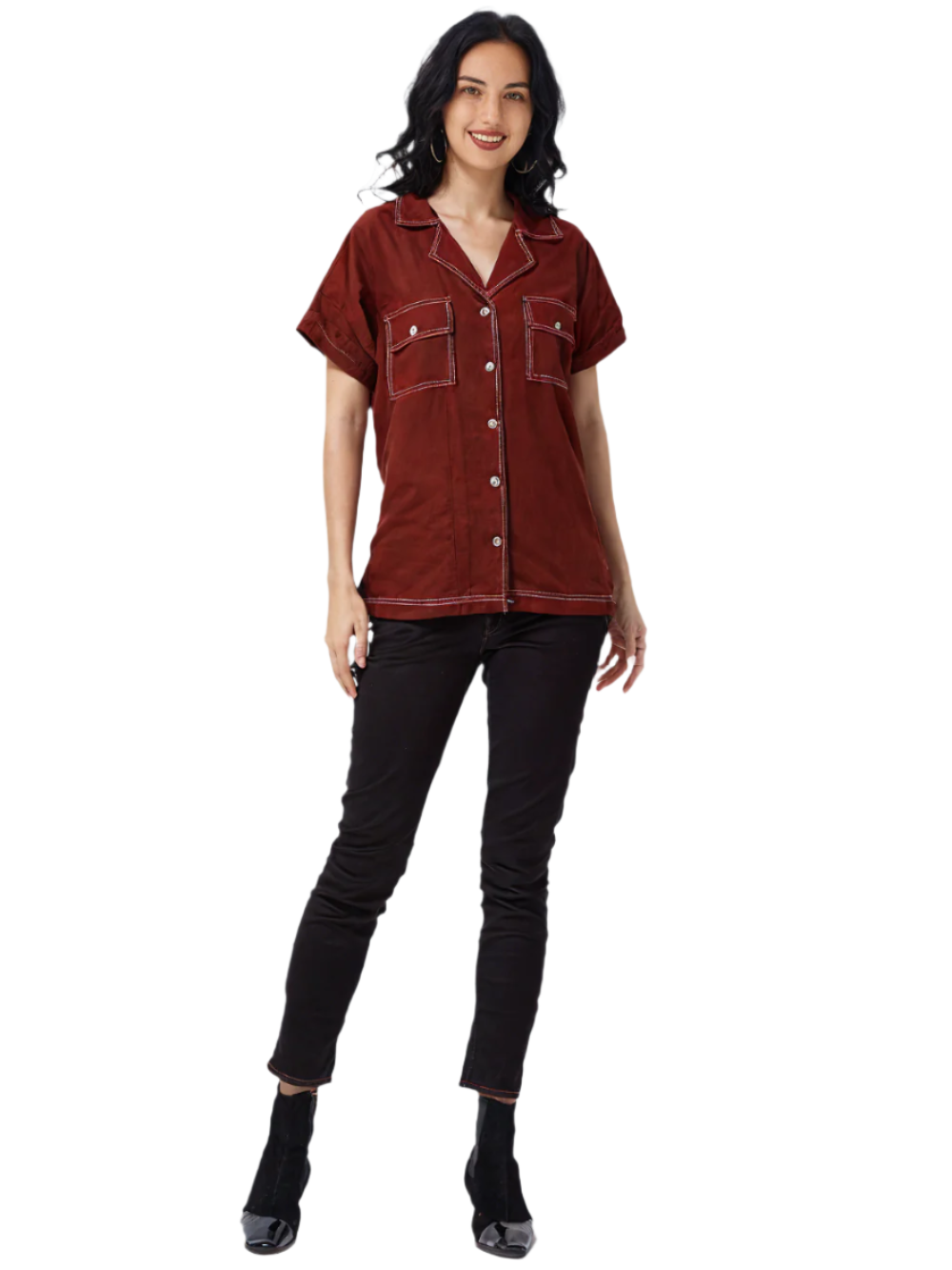 Expertly crafted for fashion-forward women, the AUGURI shirt boasts a double side pocket for added convenience and a unique collar style. Made with high-quality materials, this shirt is both functional and stylish. Elevate your wardrobe with this must-have piece.