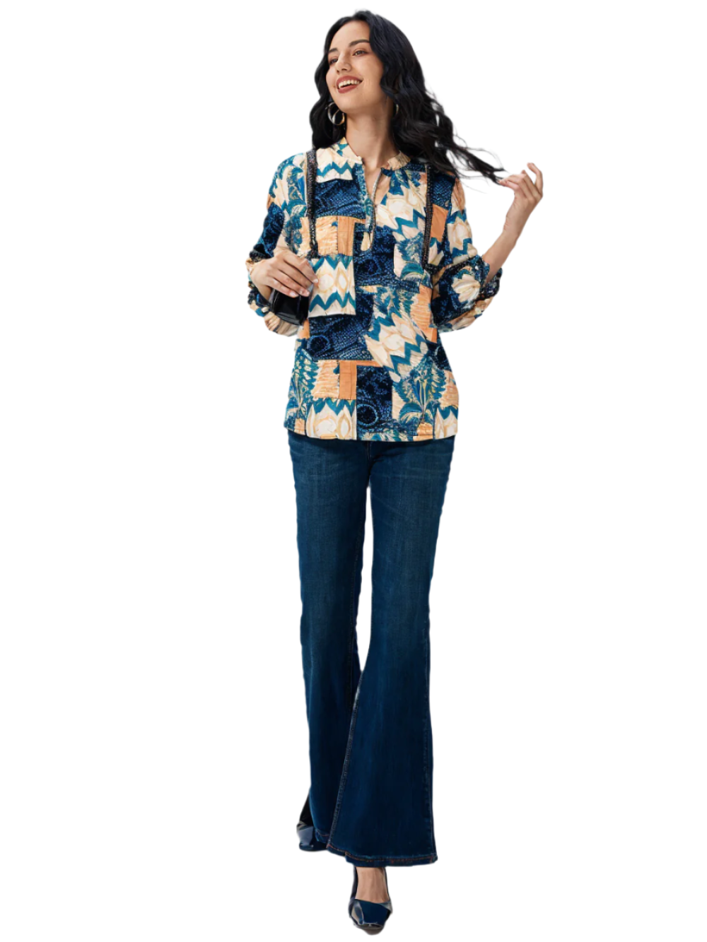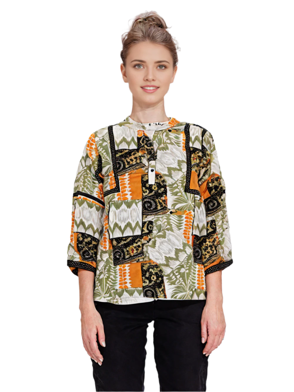 Introducing the AUGURI Women's Top, featuring a multi-print design that adds a touch of style to any outfit. Made from high-quality materials, this top offers both comfort and durability. Elevate your wardrobe with this versatile piece that is perfect for any occasion.