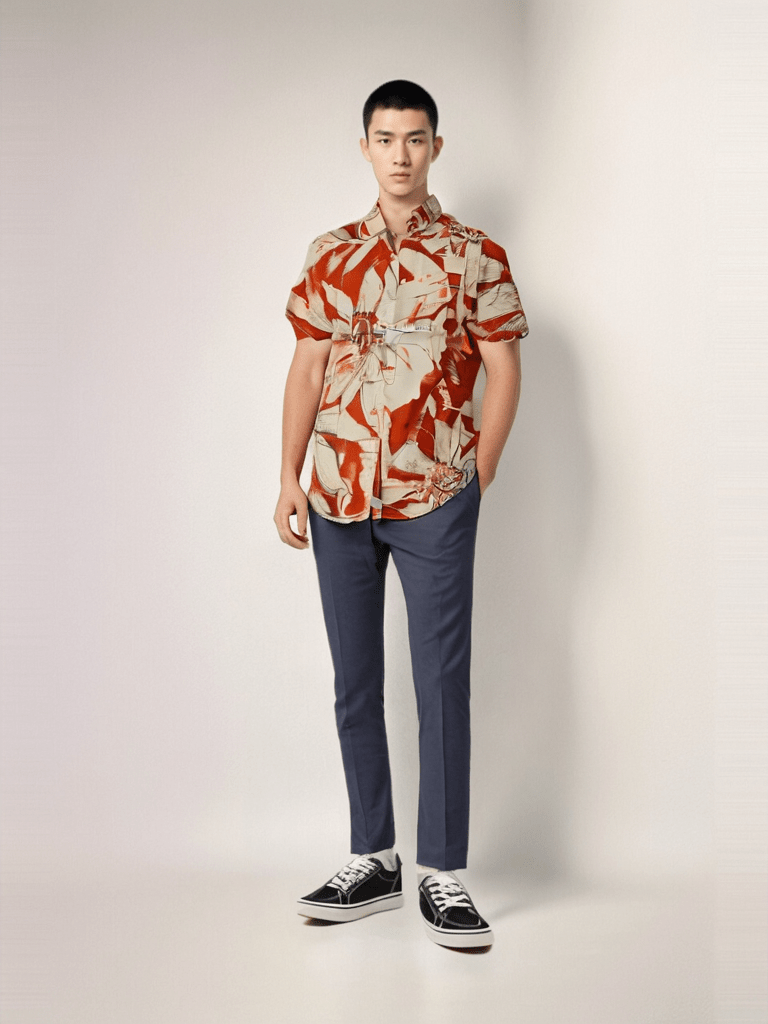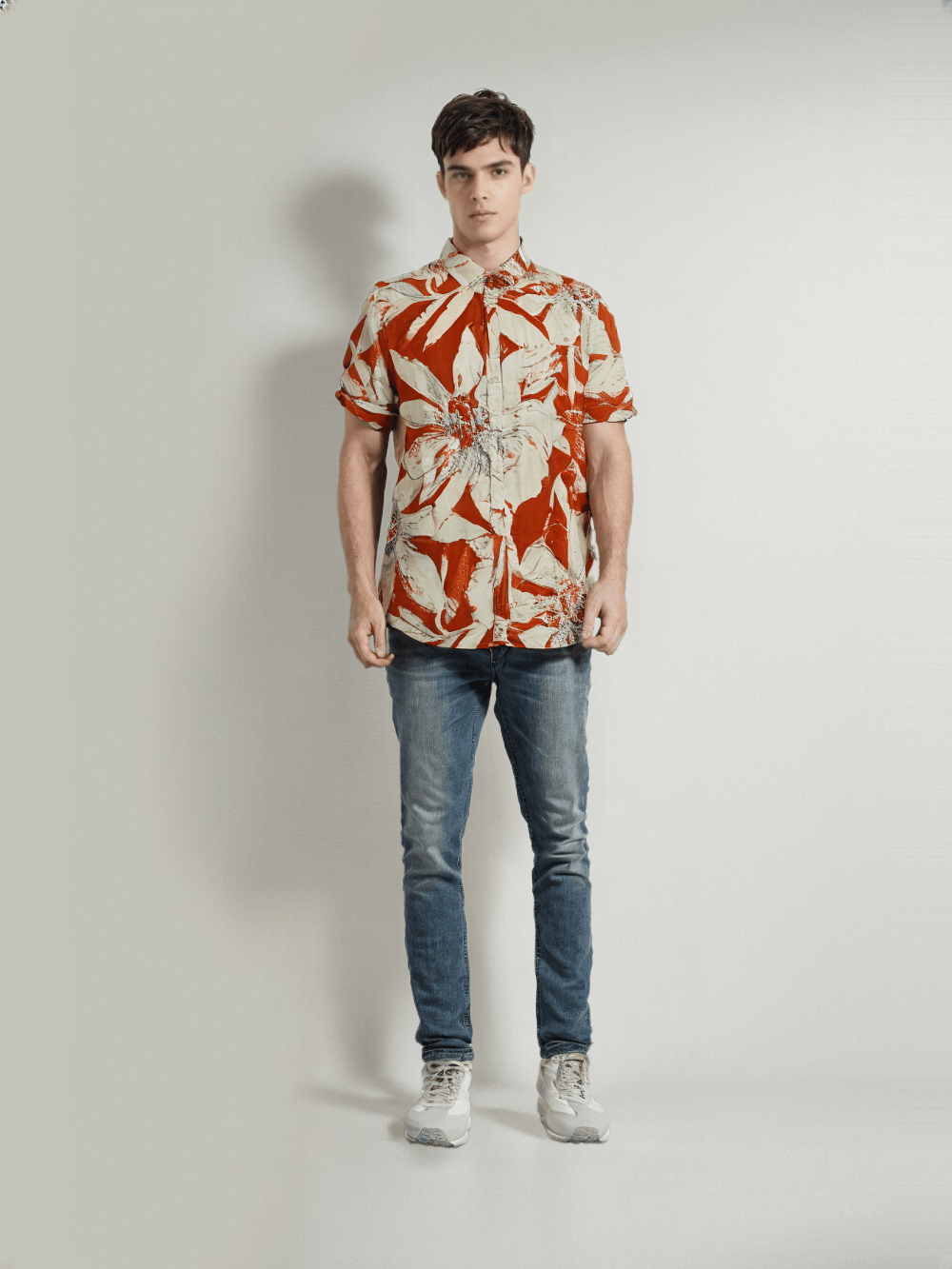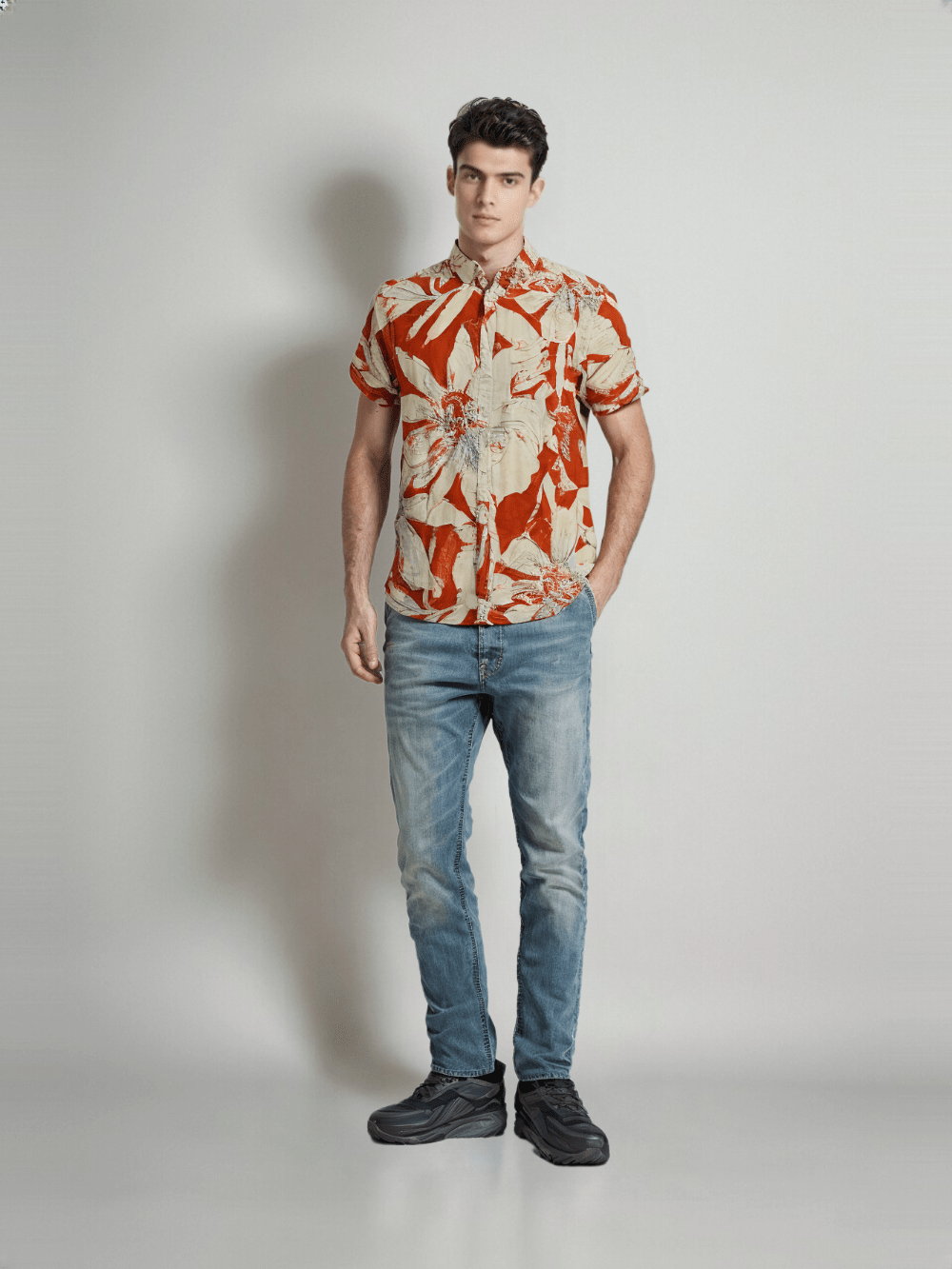 This men's shirt features a stylish and eye-catching floral print. Made with high-quality materials, it offers both comfort and durability. Perfect for any occasion, this shirt will elevate your fashion game while keeping you comfortable throughout the day.