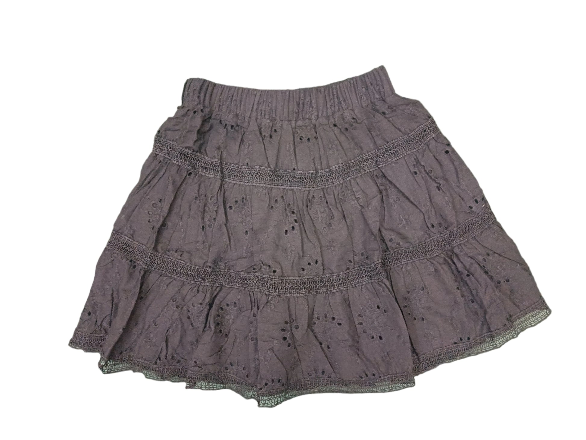 Elevate your casual wardrobe with this tiered cotton skirt, a perfect mix of laid-back boho and everyday chic. Crafted from breathable cotton with eyelet embroidery and delicate lace trim, it's your go-to piece for summer days, music festivals, or brunch dates.