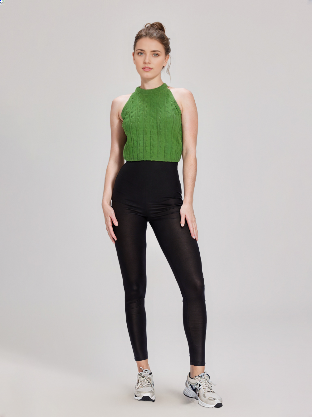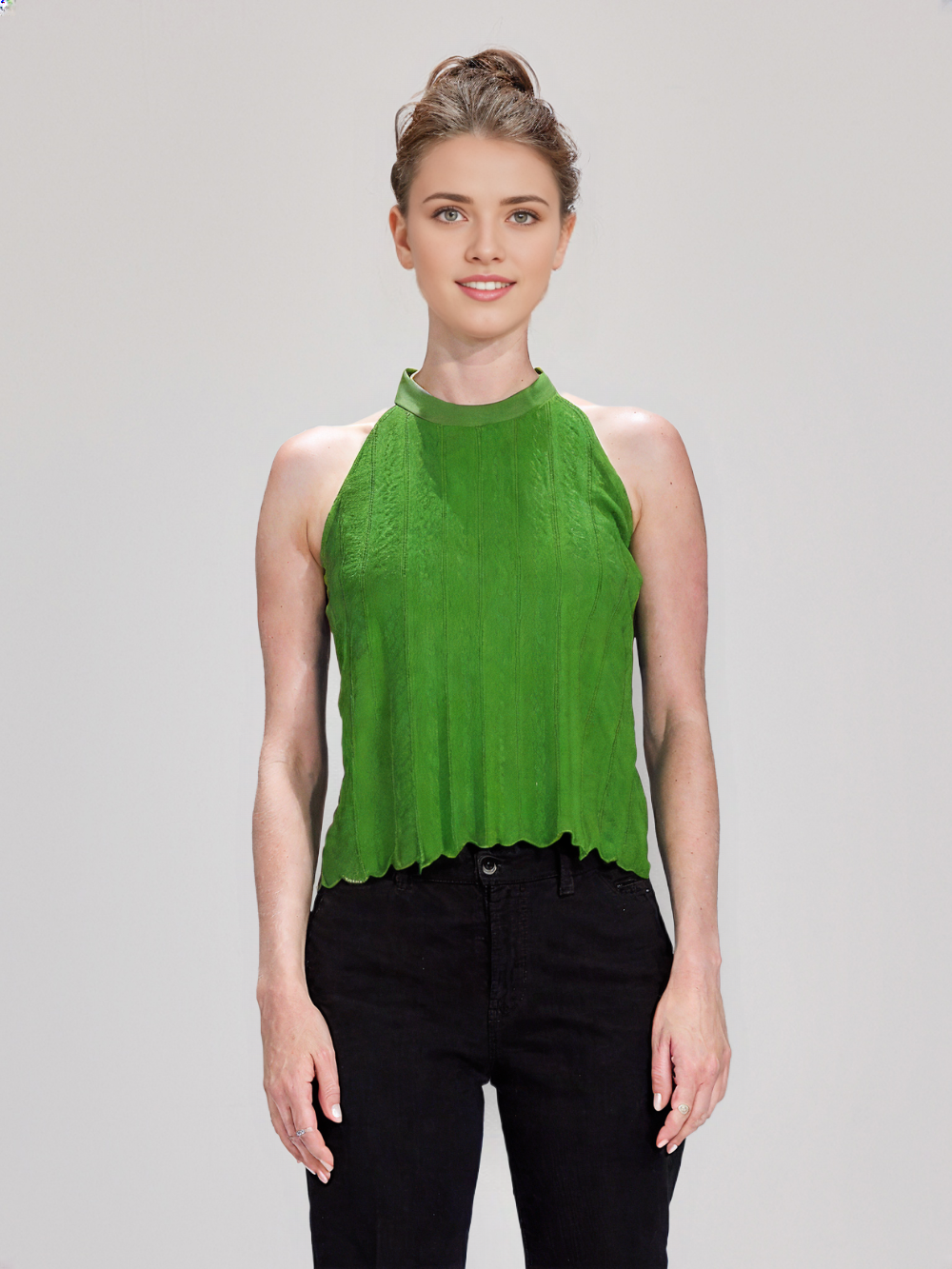 This women's knitted sleeveless top features a round neck for a flattering and comfortable fit. Made with high-quality materials, it offers both style and functionality. Perfect for any occasion, this top is sure to become a staple in your wardrobe.