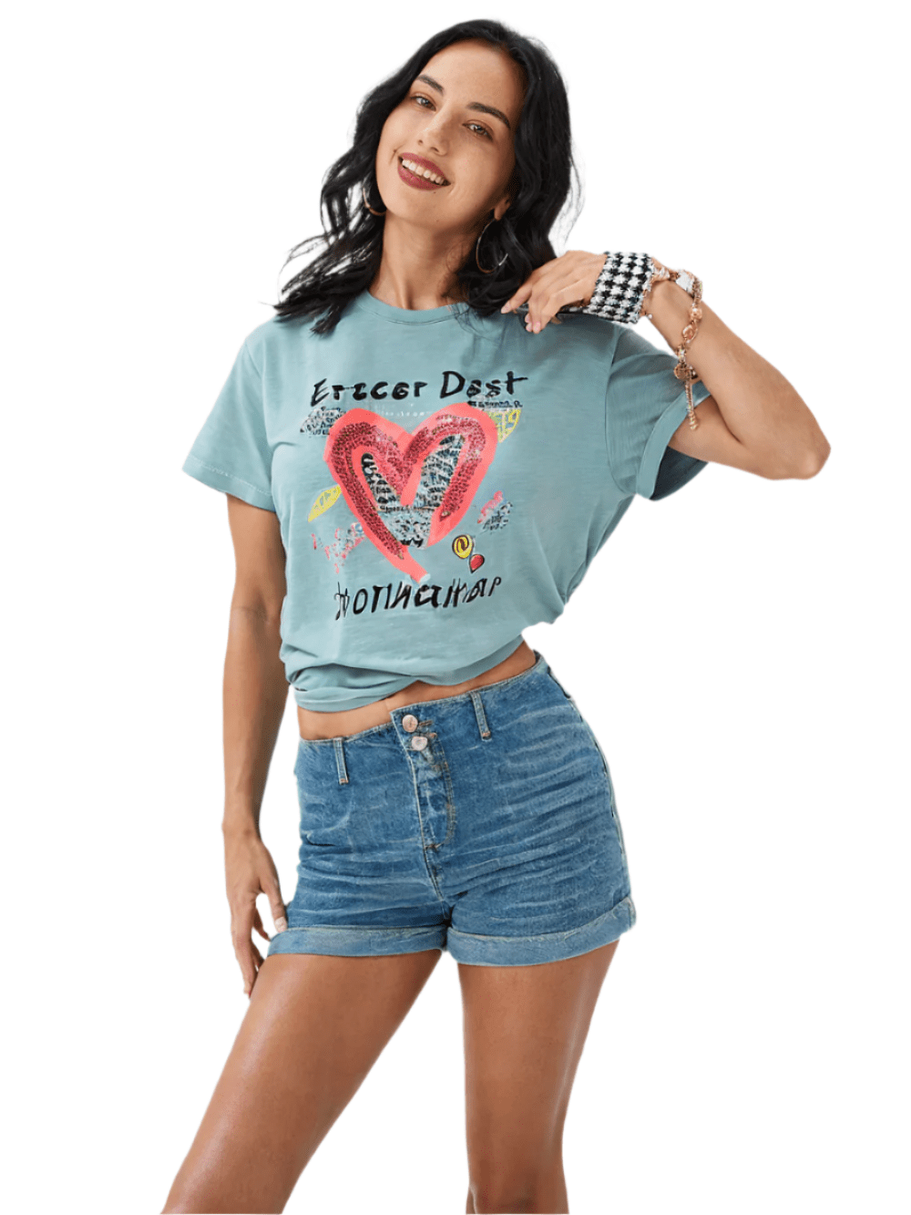 This DEAL Women's Printed T-shirt is the perfect addition to your wardrobe. The stylish print adds a touch of personality, while the comfortable fit allows for all-day wear. Made with high-quality materials, this t-shirt is both fashionable and durable. Elevate your wardrobe with this versatile piece.