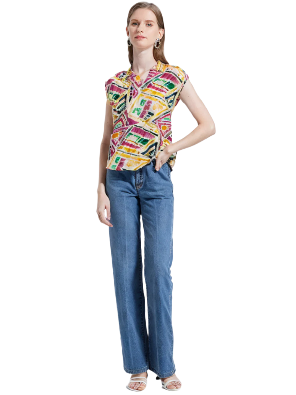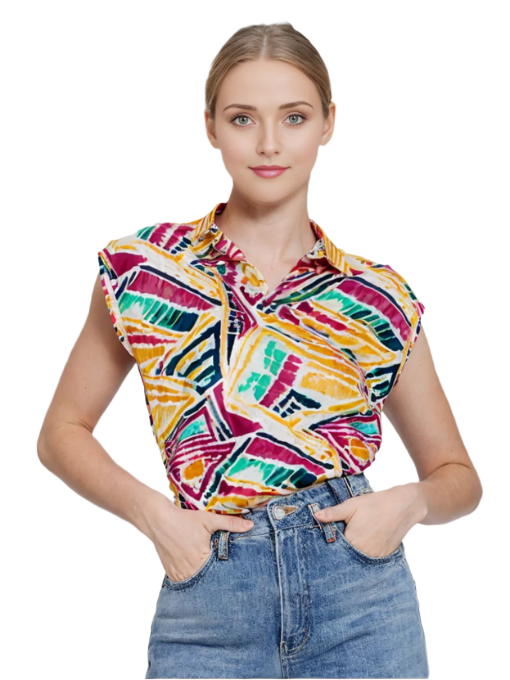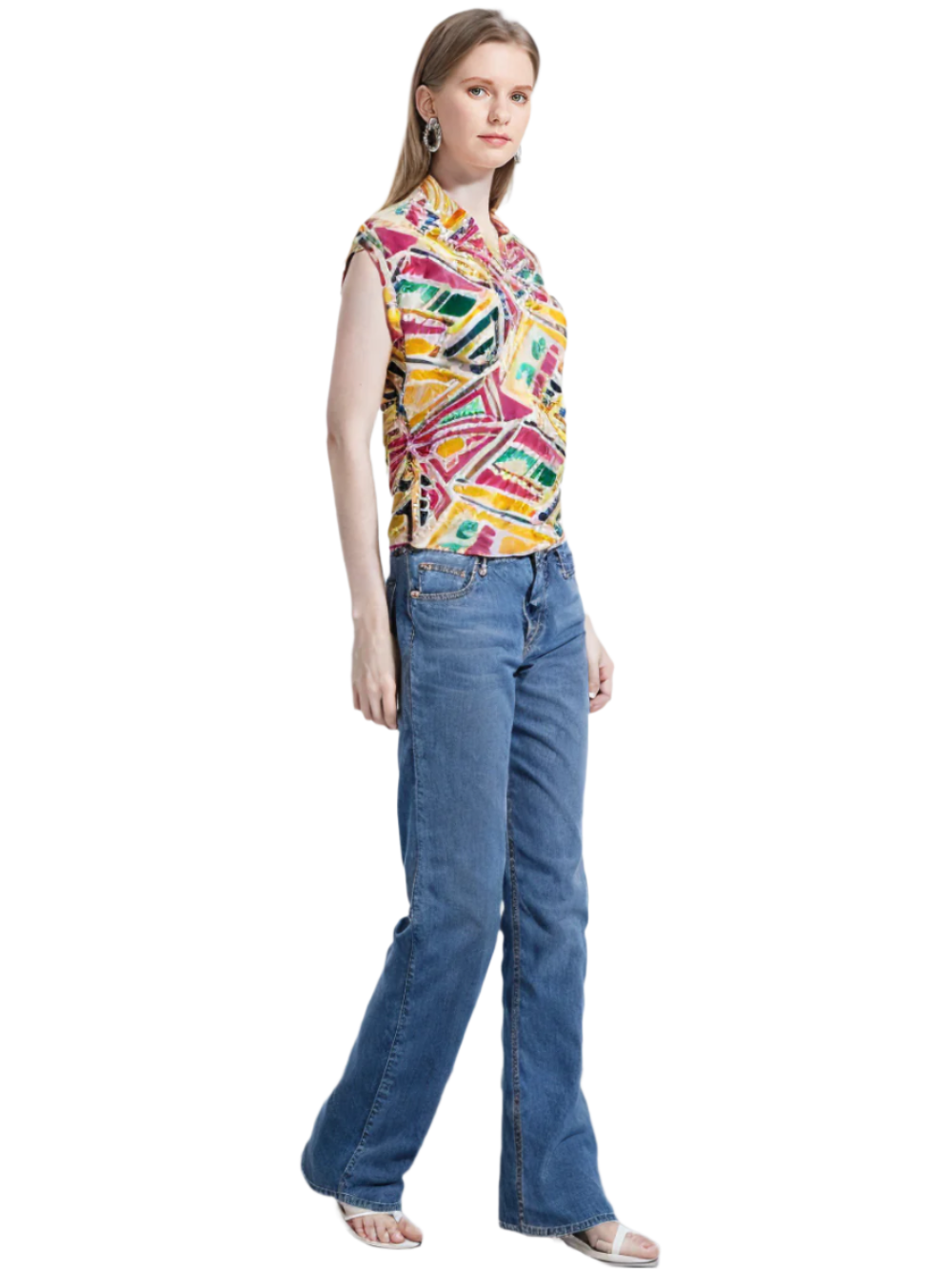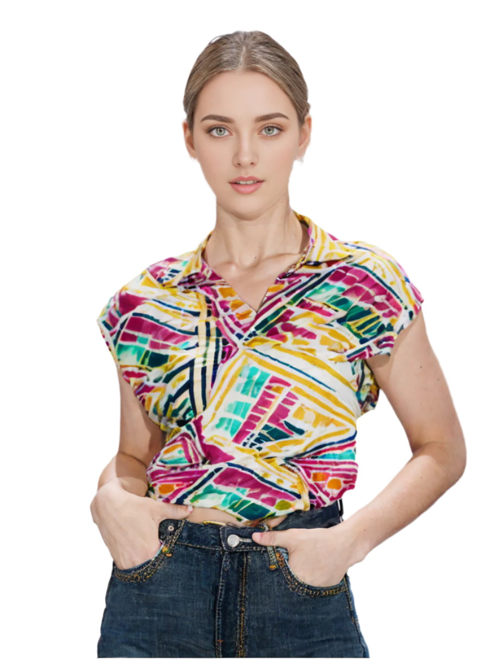 Women's Top boasts a vibrant multi color design that is sure to make a statement. Made with high-quality materials, it is comfortable, durable, and perfect for any occasion. Upgrade your wardrobe with this trendy top and stand out from the crowd in style.