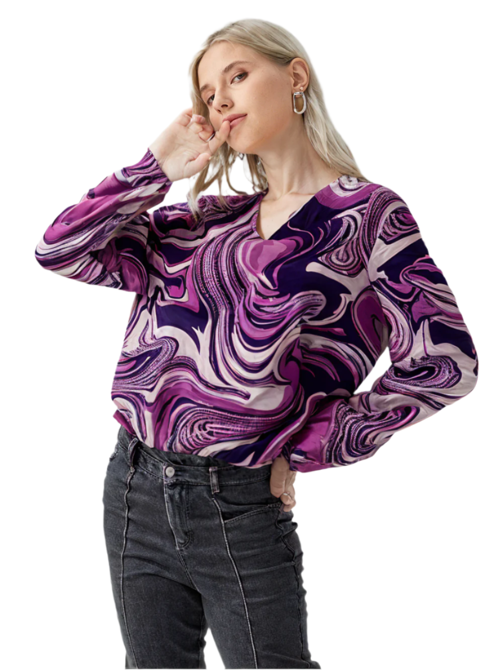 Add a pop of personality to your wardrobe with this eye-catching swirl print top, now reimagined with a flattering V-neck and chic 3/4 sleeves! Crafted from soft, breathable cotton, this top keeps you comfortable while making a bold fashion statement.