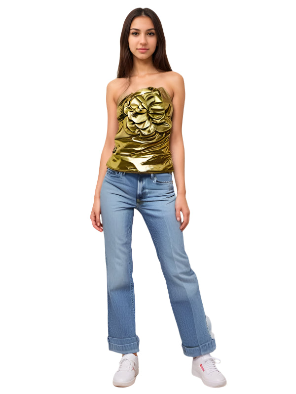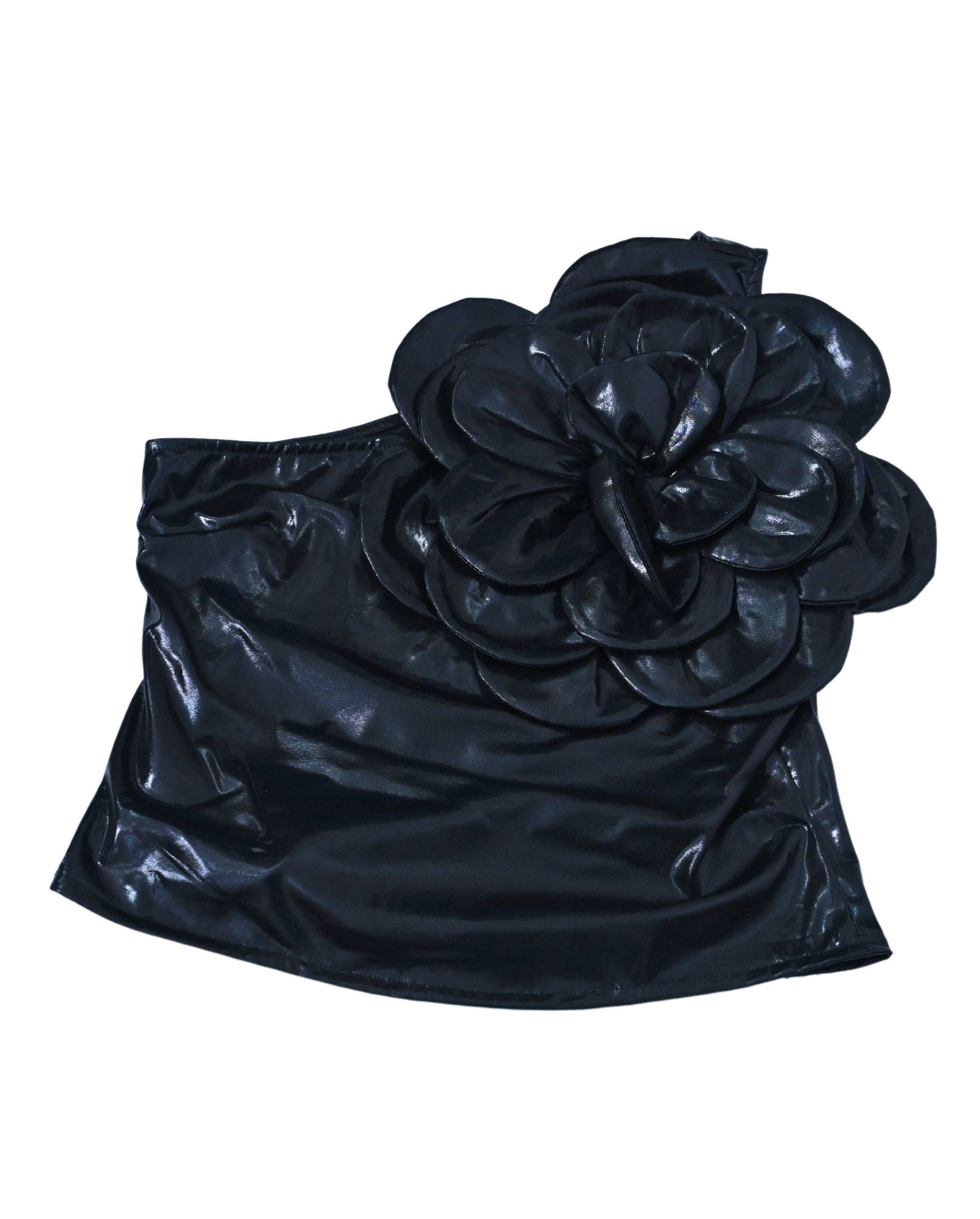 Elevate your weekend style with this one-shoulder crop top, designed to add an extra edge to your looks. It boasts a trendy ruffle detail on the front and is made from ribbed fabric. Pair it with high-rise flared jeans and sneakers for a fashionable and Party outfit.