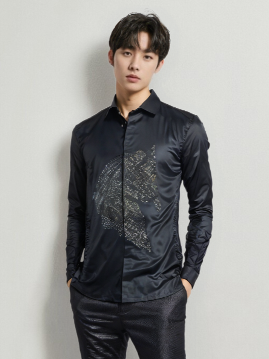 Introducing MANZON's Men's Shirt, featuring intricate sequin detailing. Elevate your style with this eye-catching design that adds a touch of sophistication to any outfit. Made with high-quality materials, this shirt offers both comfort and style. Perfect for any occasion, from casual to formal. Experience the confidence and elegance of MANZON's sequined shirt.