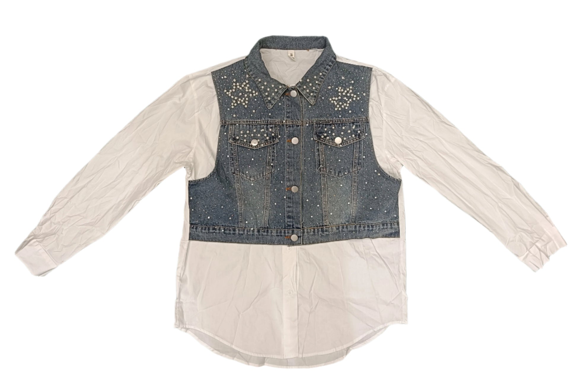 Effortlessly combine comfort and style with our Women's Denim & White Shirt. Made with high-quality denim and crisp white fabric, this shirt offers a versatile and timeless look. Perfect for any occasion, stay on-trend and comfortable with this must-have wardrobe essential.