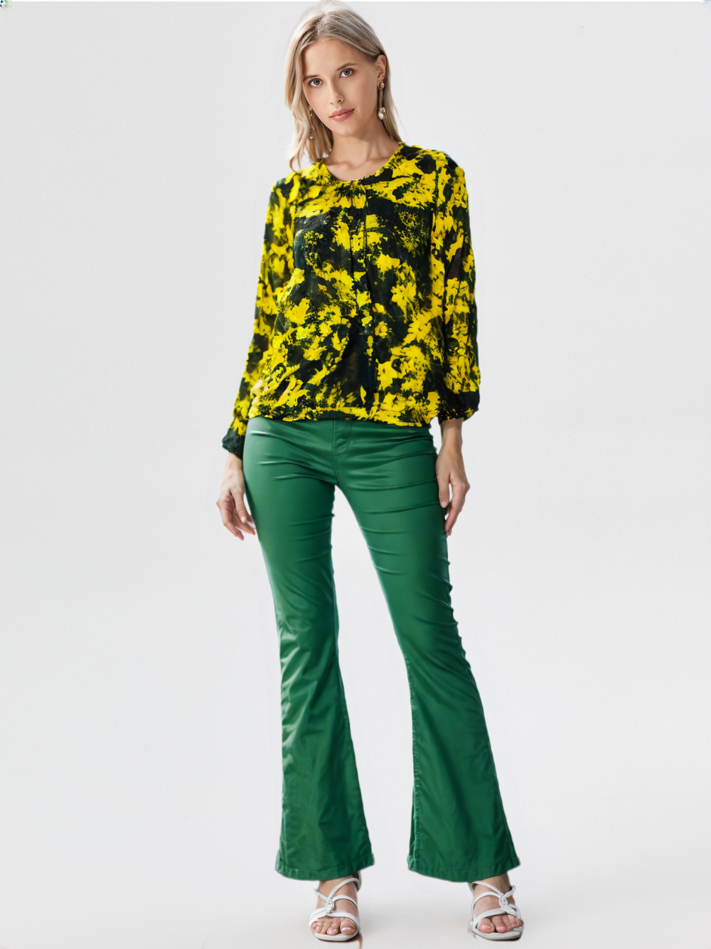 This women's printed shirt is expertly crafted with quality materials and precise attention to detail. The unique print adds a touch of personality to any outfit. Made for comfort and style, this shirt is a must-have for any fashion-forward wardrobe.