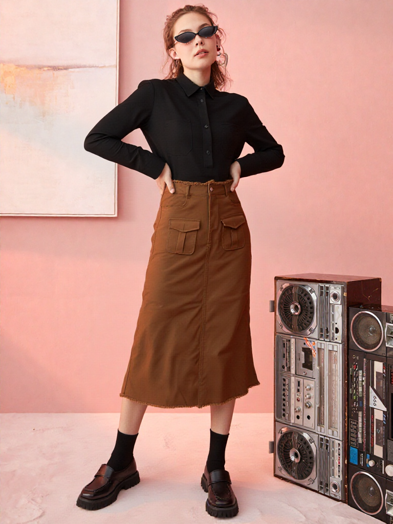 This women's skirt is expertly crafted to deliver a comfortable and flattering fit. Made from high-quality fabrics, it ensures durability and breathability for everyday wear. Its versatile design allows seamless styling for both casual and formal occasions, making it a valuable addition to your wardrobe.