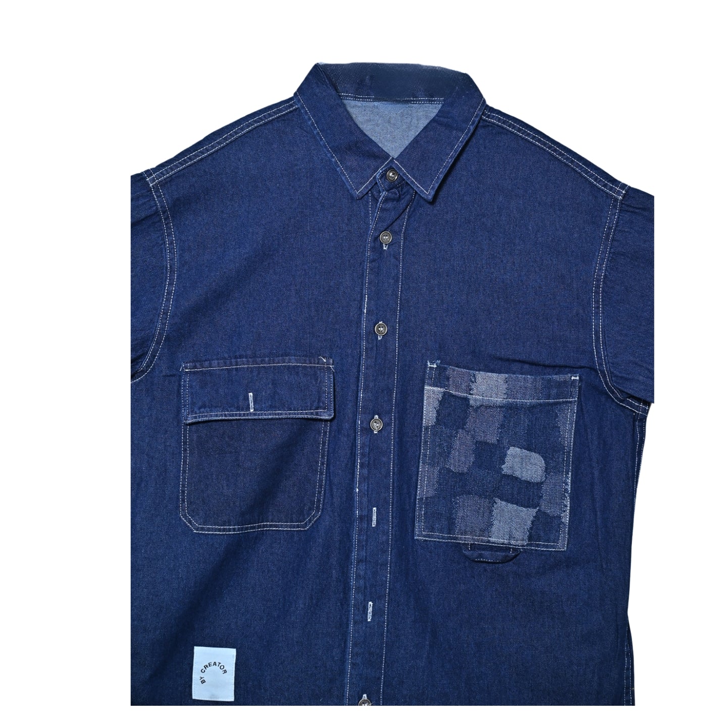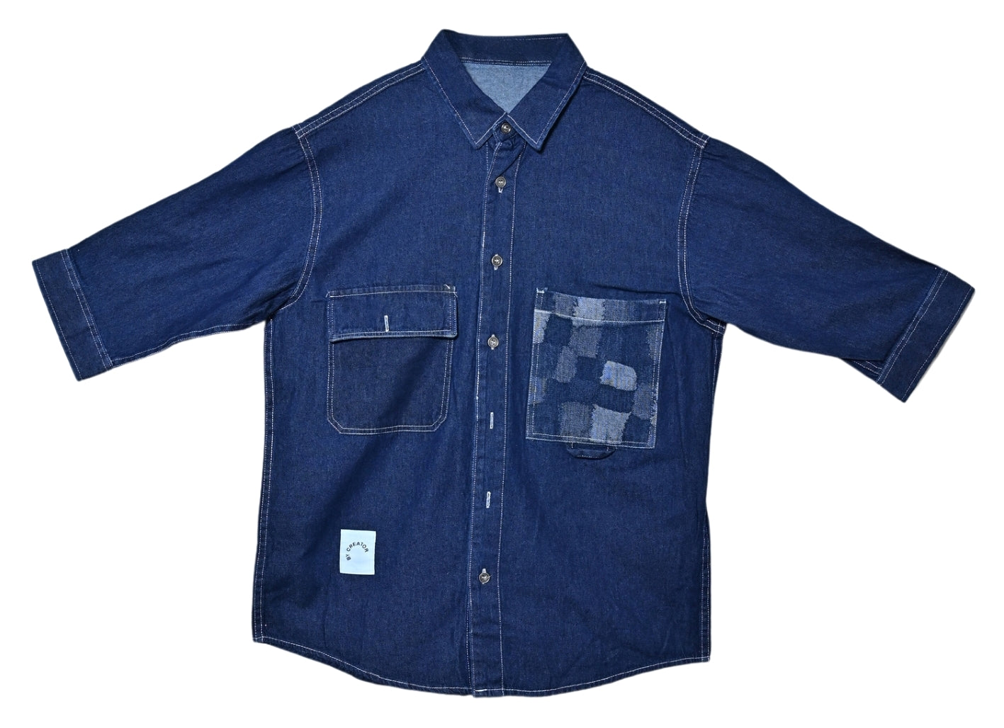 Men's solid casual half-sleeves shirt in denim-look cotton fabric: stylish, comfortable, versatile. Perfect for a casual yet polished look.