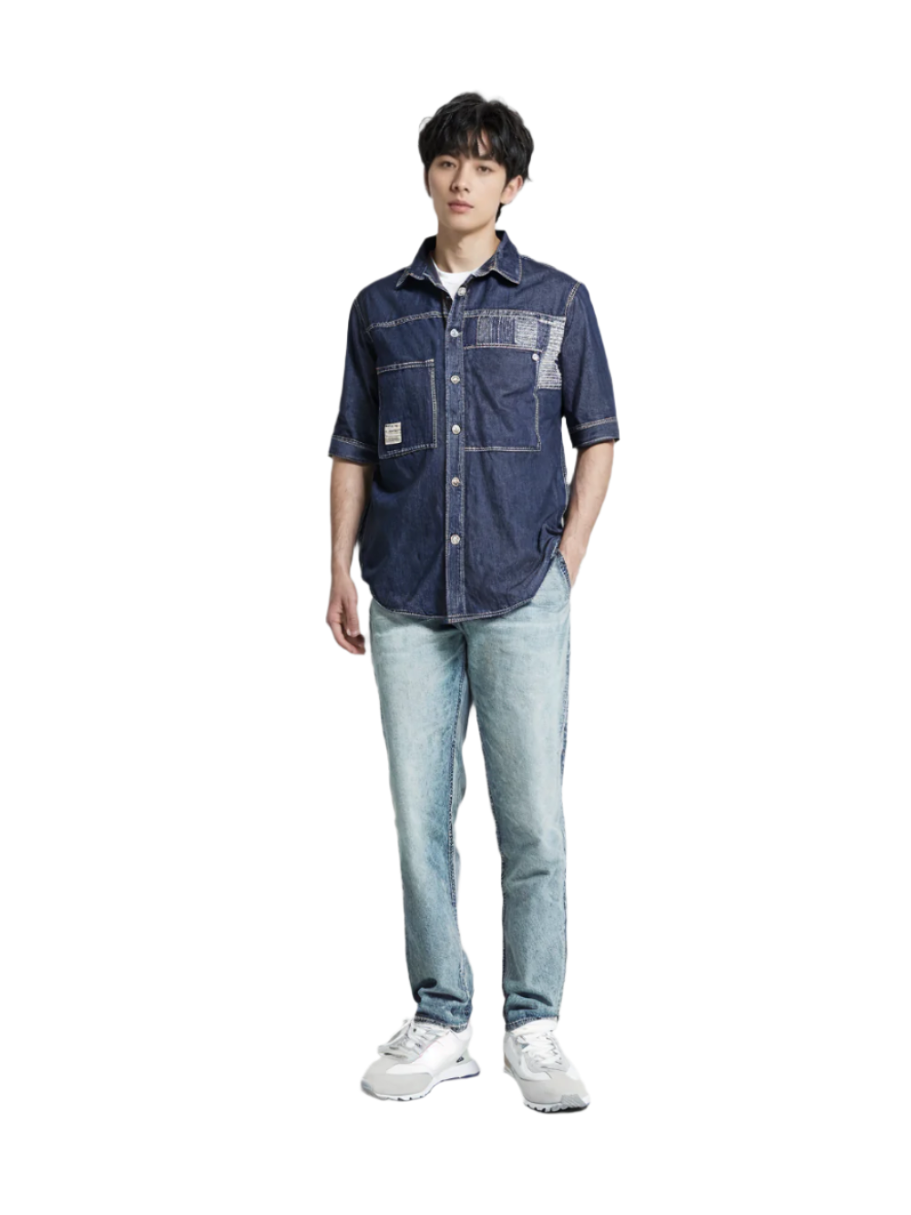 Men's solid casual half-sleeves shirt in denim-look cotton fabric: stylish, comfortable, versatile. Perfect for a casual yet polished look.