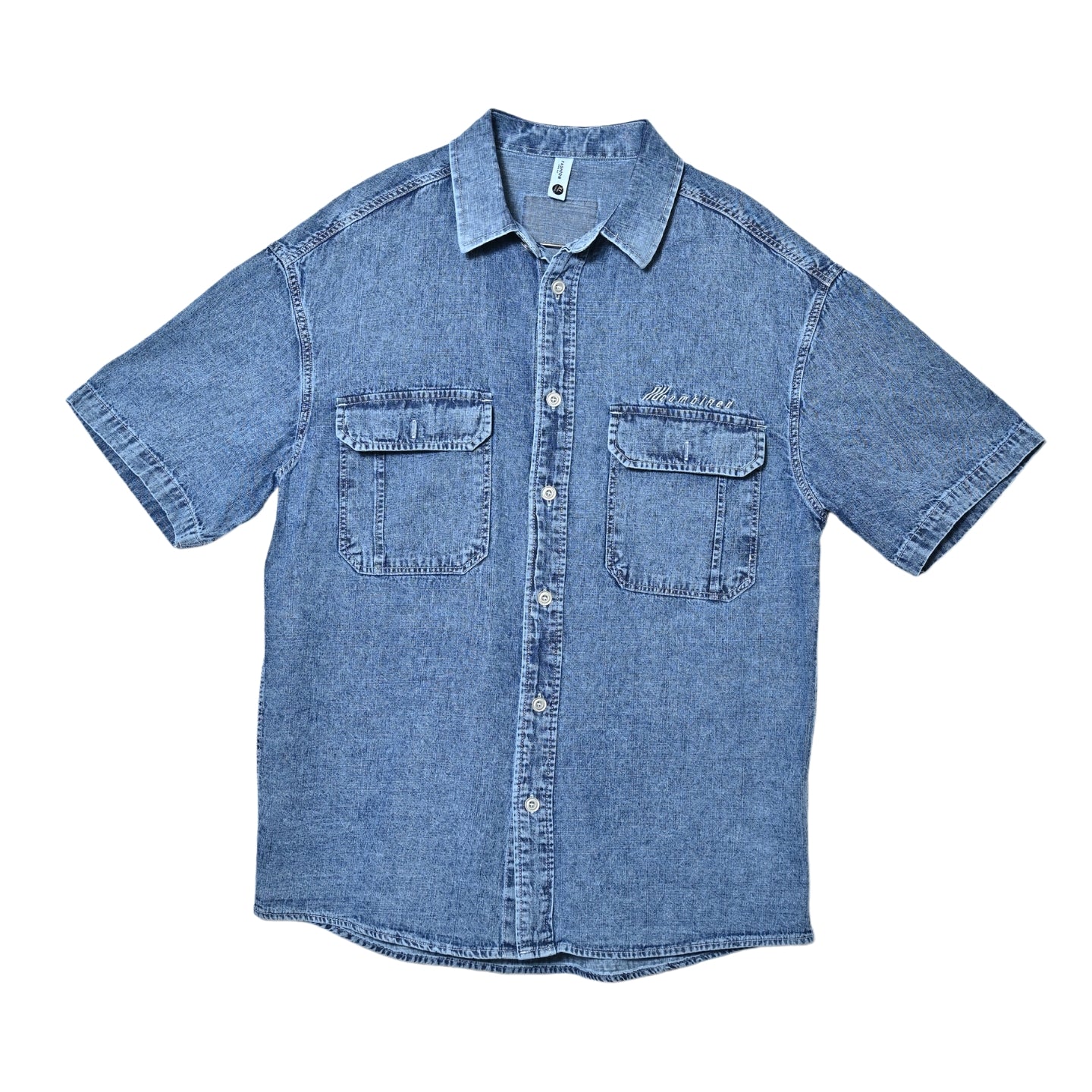 Men's solid casual half-sleeves shirt in denim-look cotton fabric: stylish, comfortable, versatile. Perfect for a casual yet polished look.