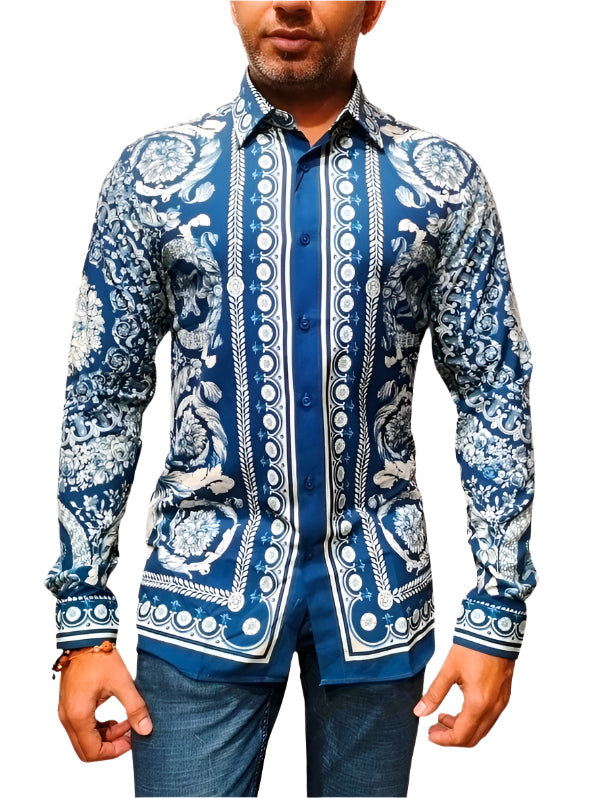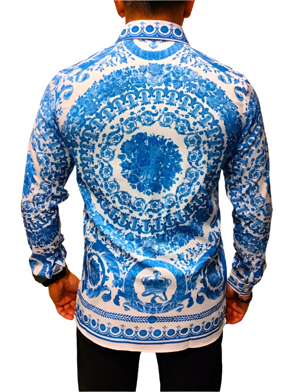 Expertly crafted with a crisp white print, this men's shirt offers a touch of sophistication to any outfit. Made from high-quality materials, it provides both comfort and style. Elevate your wardrobe with this versatile and timeless piece.