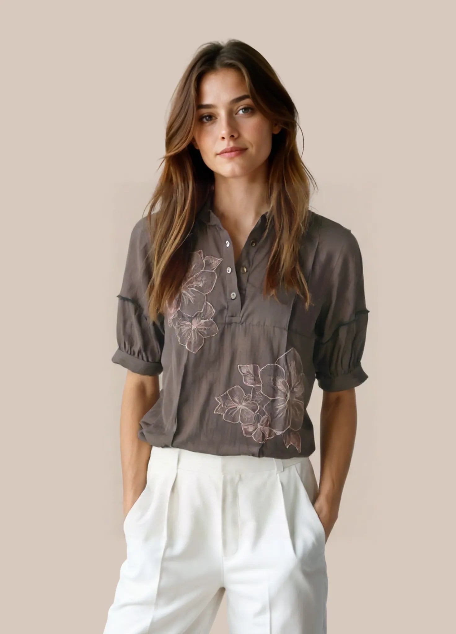 This meticulously designed women's top exemplifies superior craftsmanship with attention to structural details and fabric quality. The balanced proportions create a flattering silhouette while maintaining optimal comfort. Strategic seam placement enhances the natural form, and the versatile styling potential makes it an indispensable wardrobe component suitable for multiple occasions and seasonal transitions.