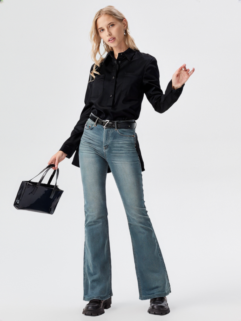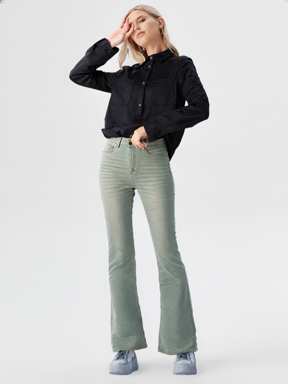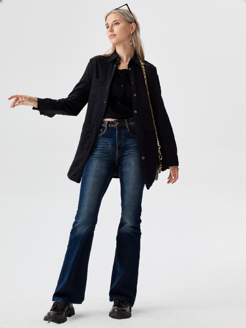 Expertly designed for a flattering fit, our Women's Boot cut Jeans offer a timeless silhouette that elongates the legs. Made with premium denim fabric and precision stitching, these jeans provide comfort and style for everyday wear. Elevate your wardrobe with our versatile and classic Boot cut Jeans.