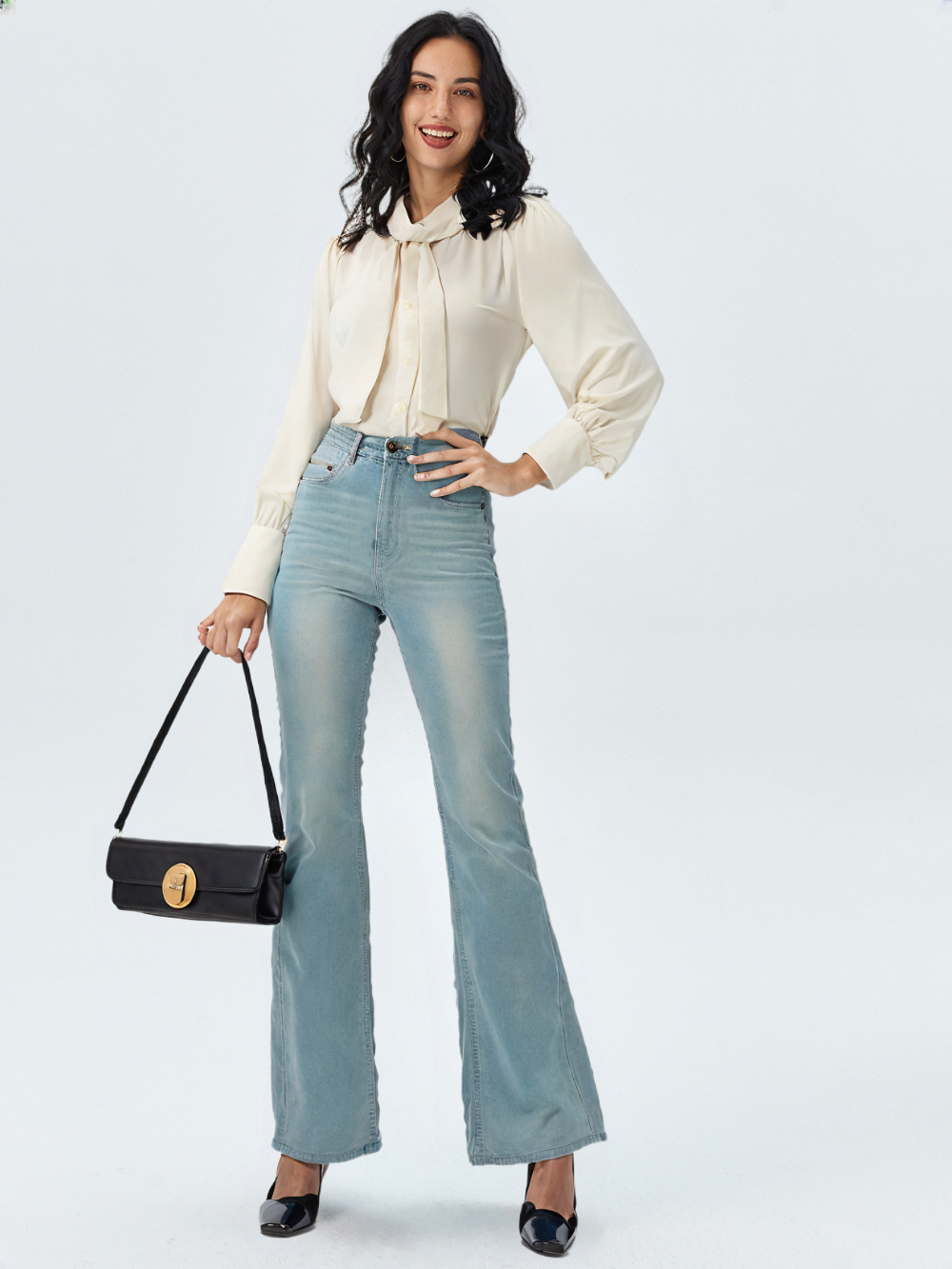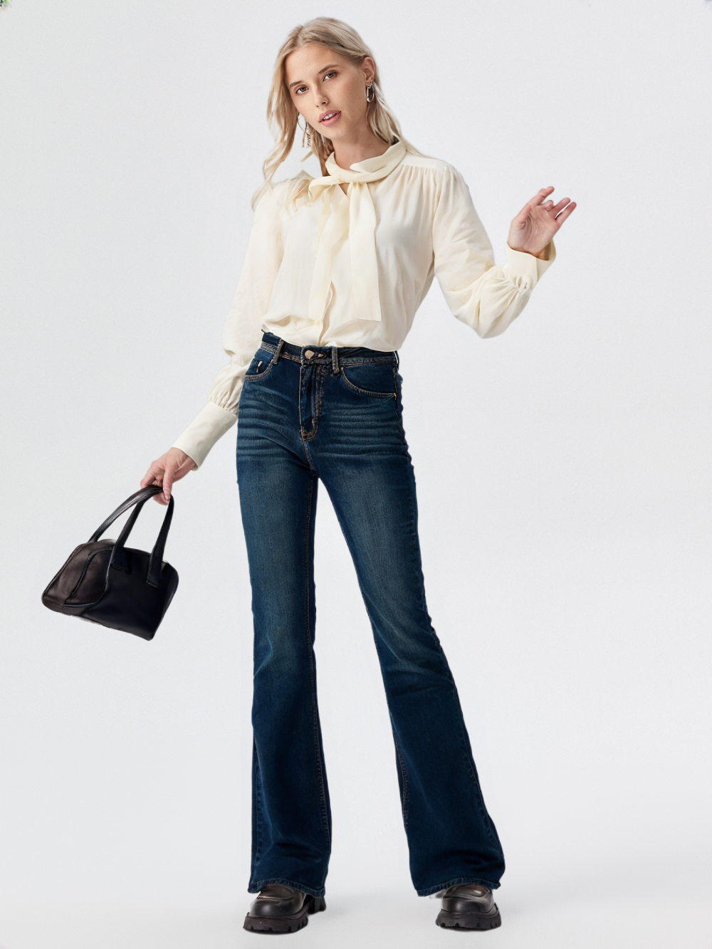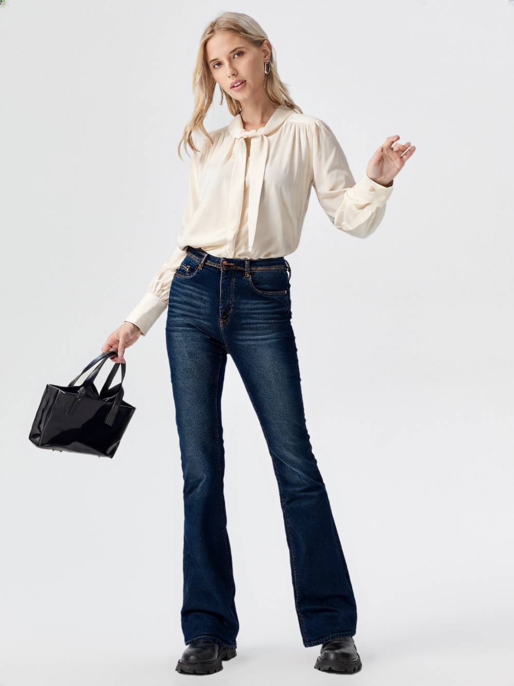 Expertly designed for a flattering fit, our Women's Boot cut Jeans offer a timeless silhouette that elongates the legs. Made with premium denim fabric and precision stitching, these jeans provide comfort and style for everyday wear. Elevate your wardrobe with our versatile and classic Boot cut Jeans.