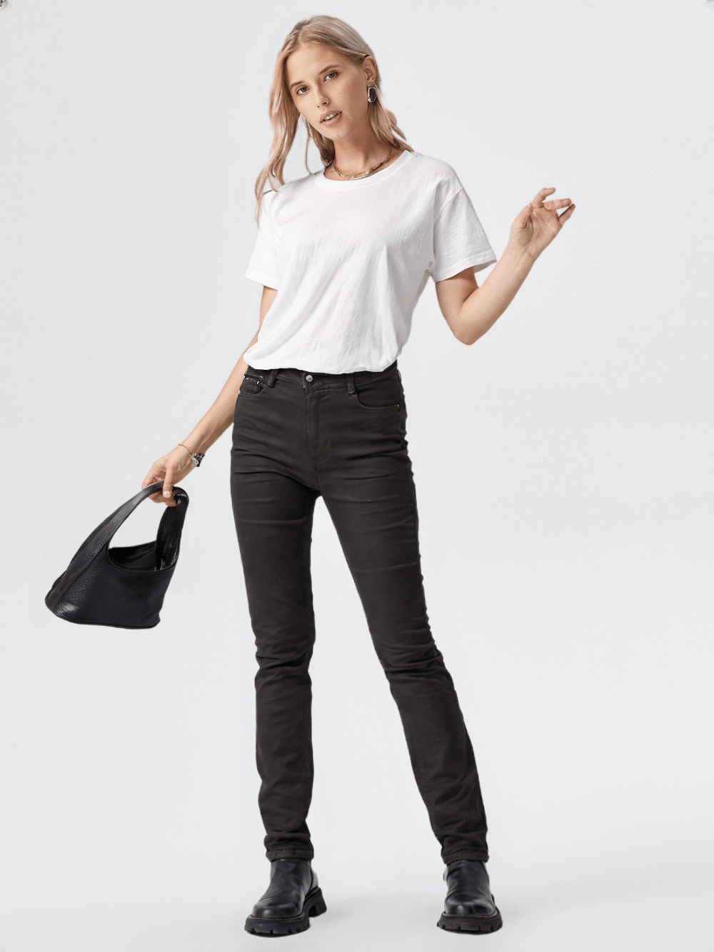 Achieve a sleek and modern look with our Women's Black Skinny-fit Jeans. Made from high-quality materials, these jeans provide a flattering and comfortable fit. The slim design flatters your figure, while the versatile black color makes these jeans a staple in your wardrobe. Elevate your style with these essential jeans.