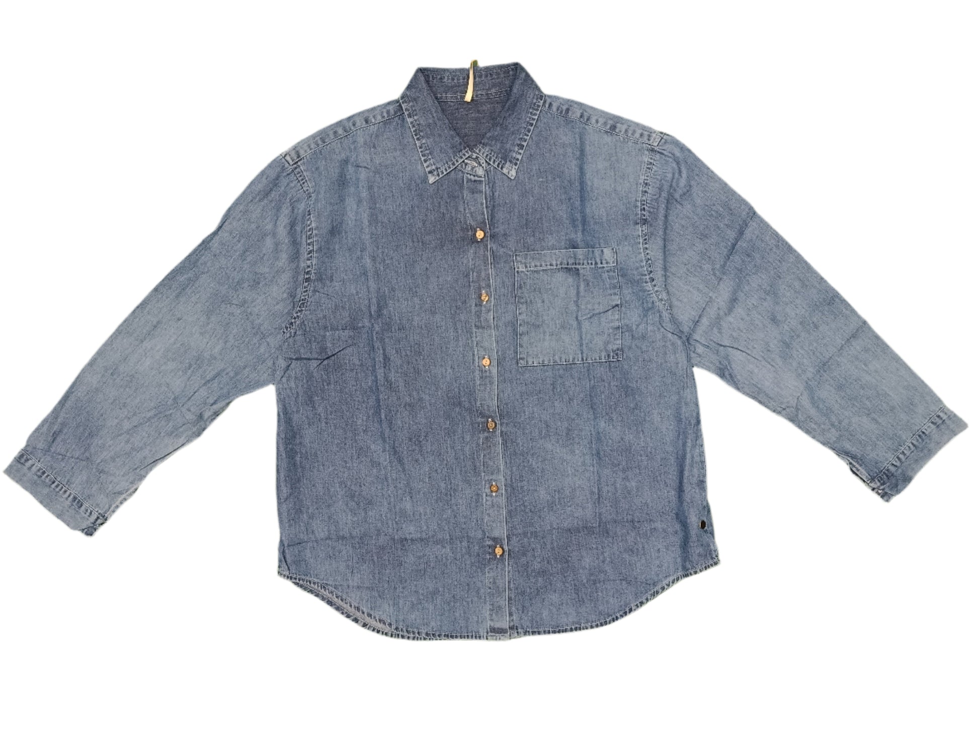 Oversized Denim Shirt: Features a single front pocket, classic collar, and full-button closure for a relaxed yet chic vibe.