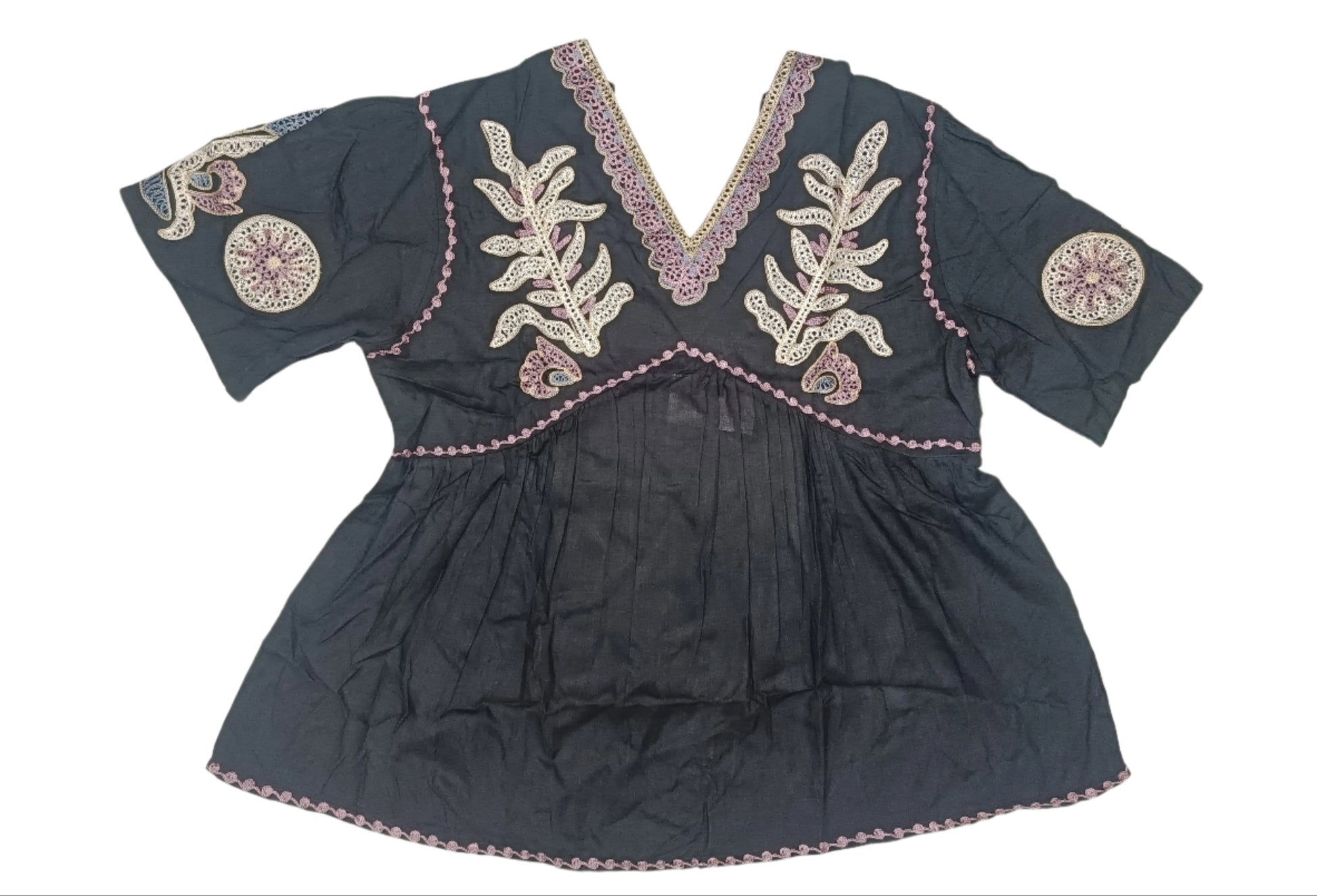 Turn heads with this beautifully designed boho-style top featuring intricate embroidery and a flattering silhouette. The V-neckline, flowing fit, and statement sleeves combine for an effortlessly stylish look, perfect for everyday wear or casual outings.