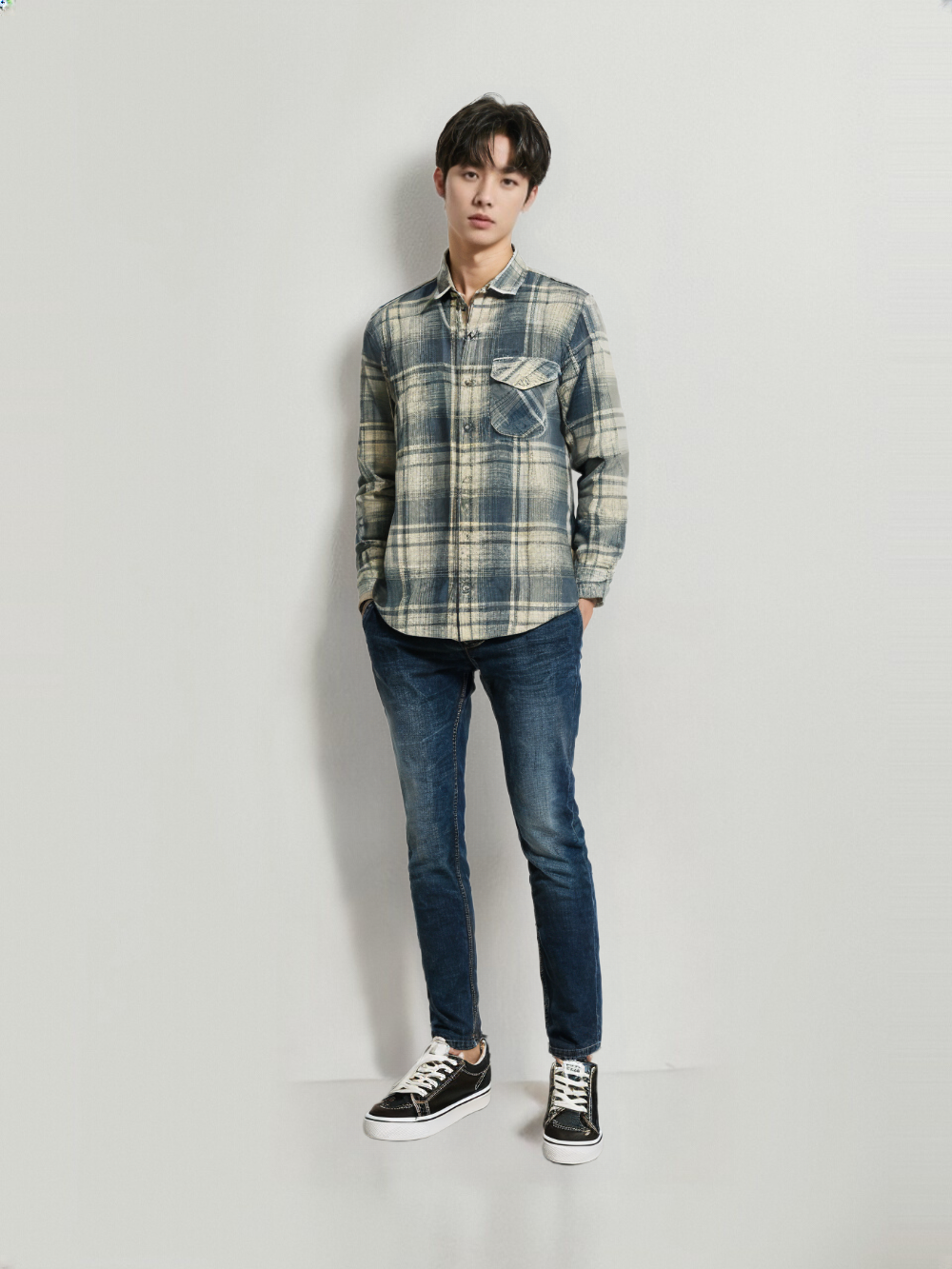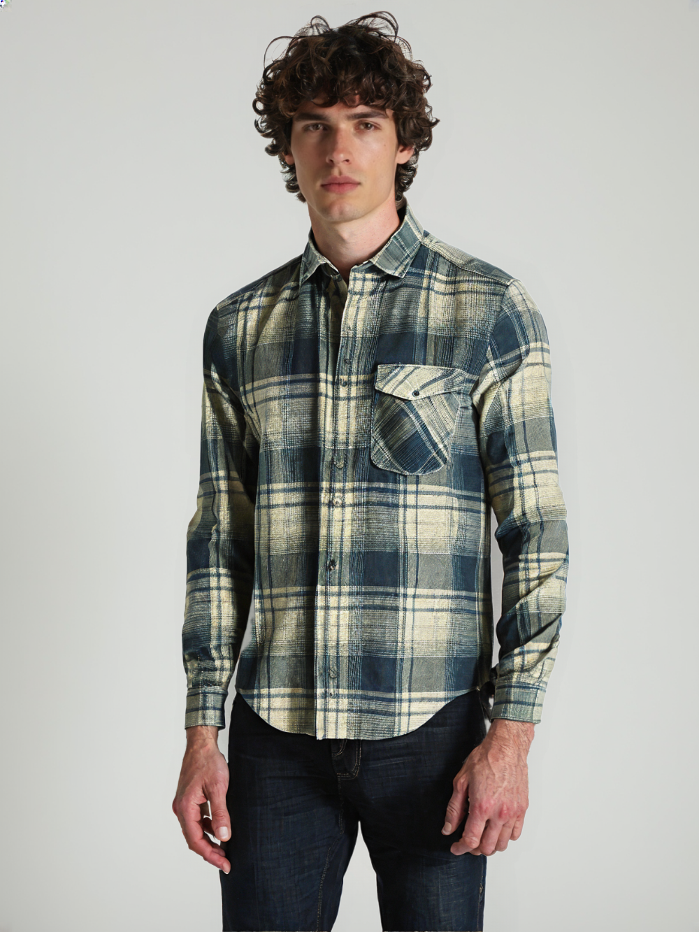 Sky Fade Checks – Brushed Cotton Casual Shirt