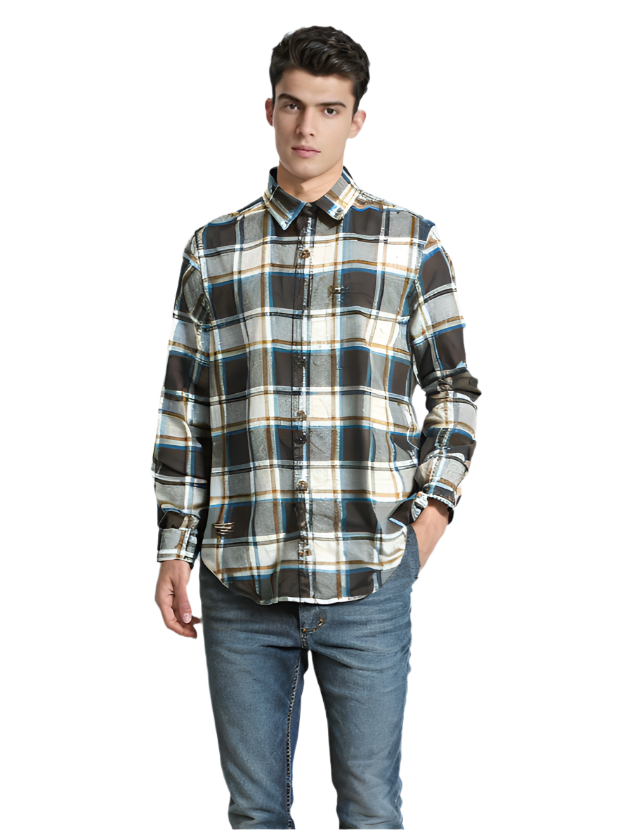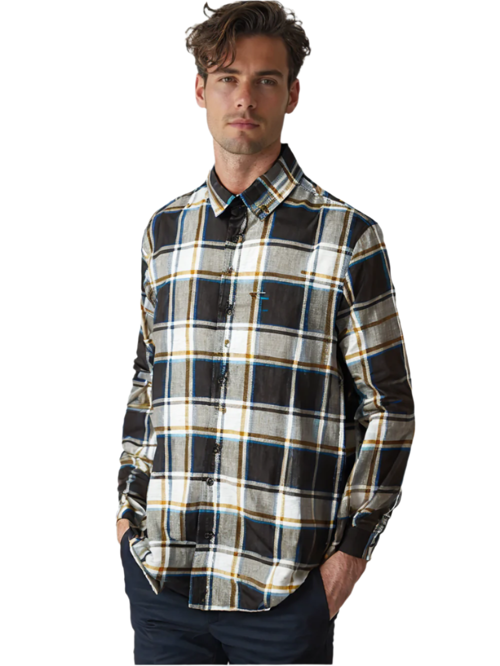 Add sharpness to your casual wardrobe with this coffee-toned check shirt from River Blue. Featuring rich browns with hints of blue and white, it’s a standout piece that’s still effortlessly wearable.