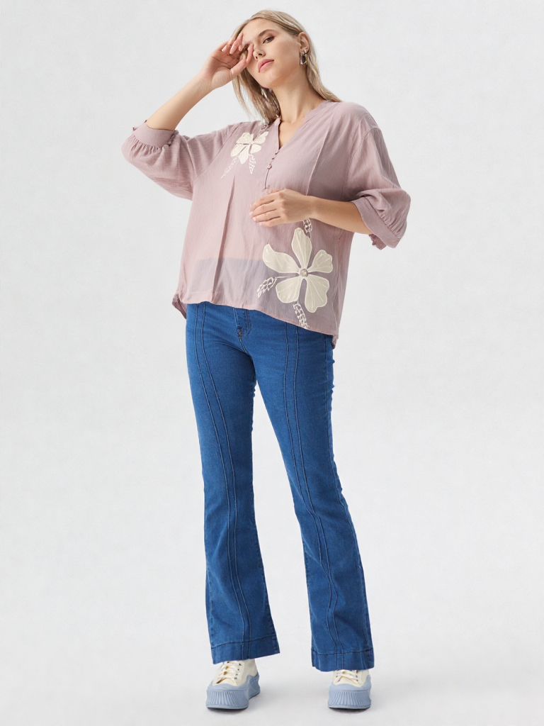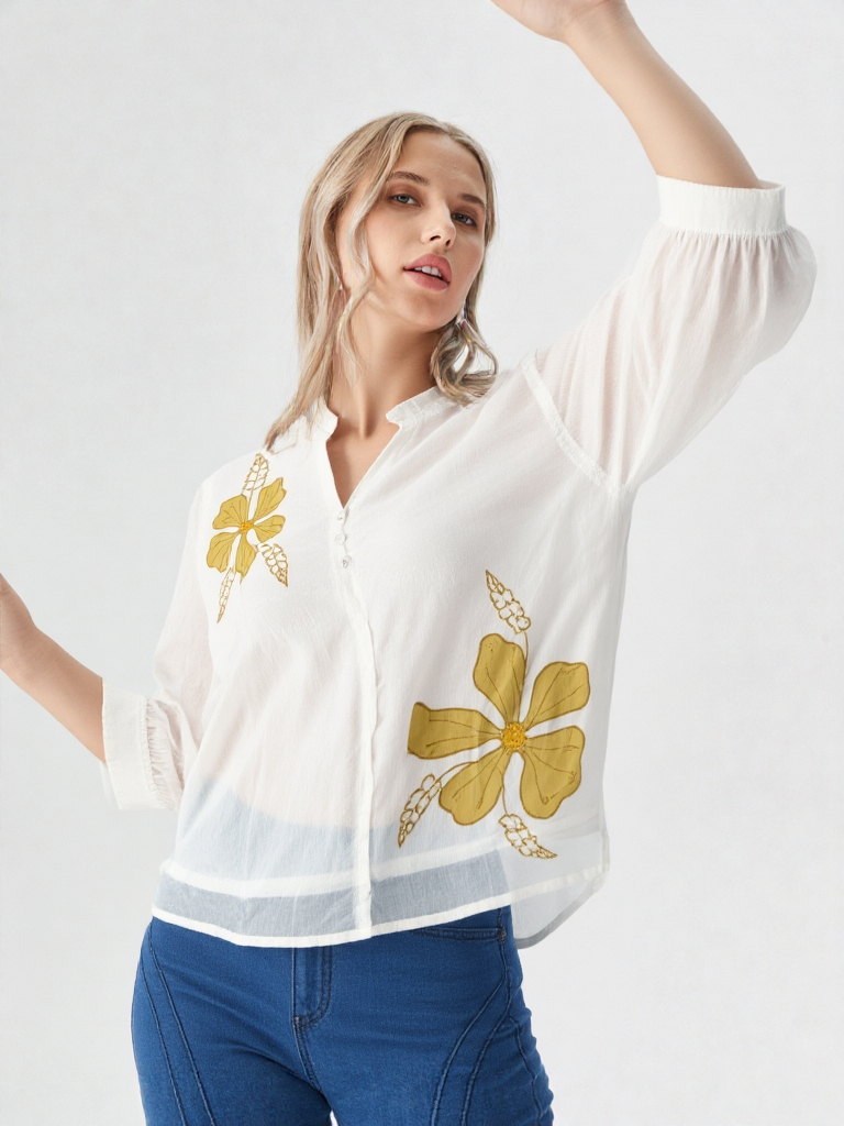 This women's top is crafted to deliver both style and comfort, featuring a tailored fit that flatters a variety of body shapes. Made from breathable, high-quality fabric, it ensures all-day wearability. Its versatile design makes it suitable for layering or wearing alone, perfect for casual or semi-formal occasions. A refined addition to any modern wardrobe.