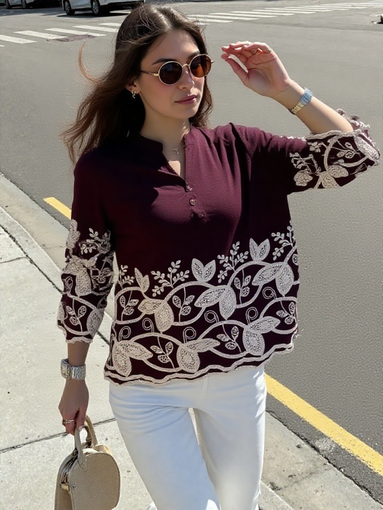This women's top is expertly designed to combine style and comfort, featuring a tailored fit that enhances your silhouette. Made from quality materials, it offers breathability and durability for everyday wear. Its versatile design makes it suitable for layering or wearing alone, providing a refined option for both casual and professional settings.